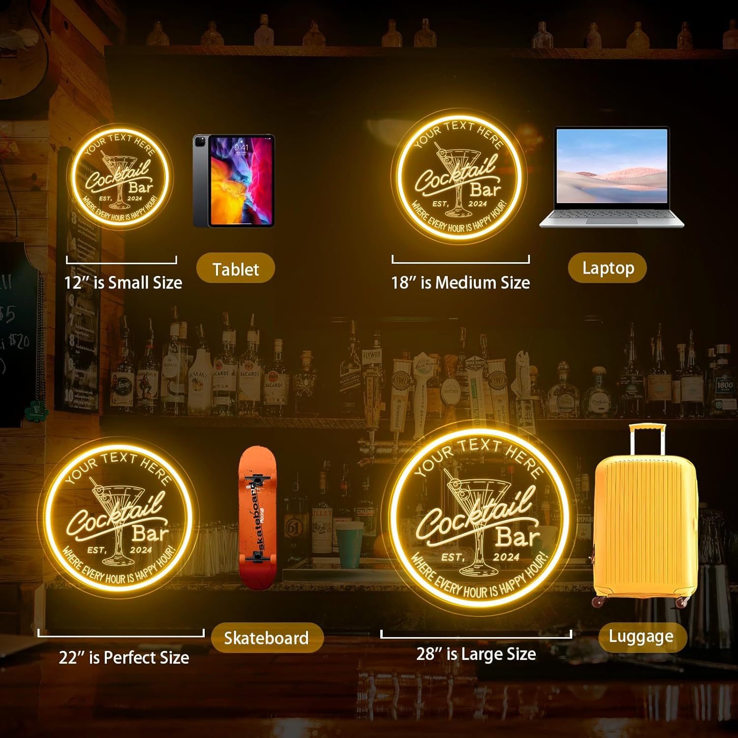 - 【Personalized Bar Signs】The personalized bar neon sign create a romantic, warm and stylish atmosphere for your home bar decor. Choose your favorite size and color, enter your custom text and so on and tailored to your decoration theme to create a truly belong you one-of-a-kind led sign. Click the "Customize Now" button to start!