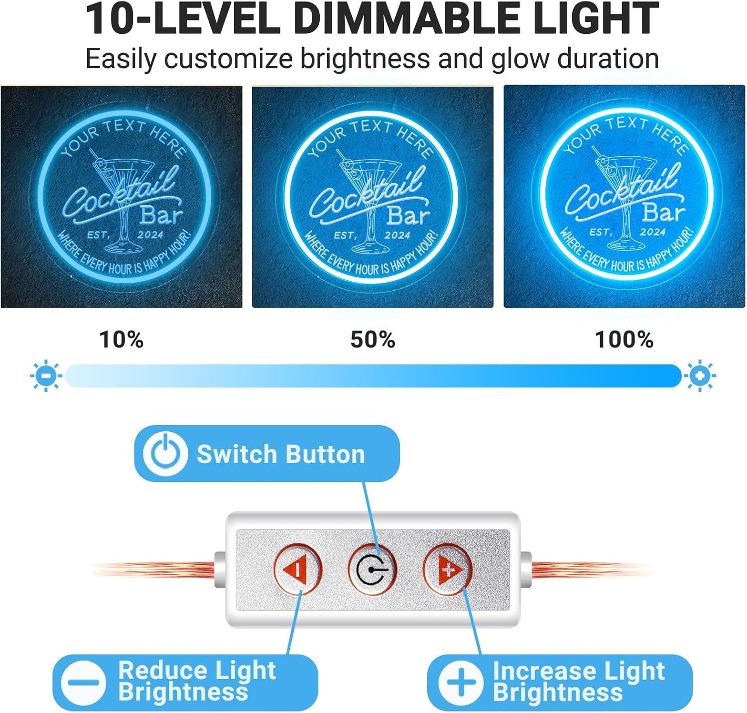 - 【3D Engraving Process】Our personalized bar neon signs feature a upgraded 3D engraving process, where custom text and graphics are etched onto a clear acrylic board. The stereo carvings are colorless and illuminated by vibrant colored LED neon strips that bring out the best 3D lighting, adding depth and brightness to turn any wall into a personalized artwork.