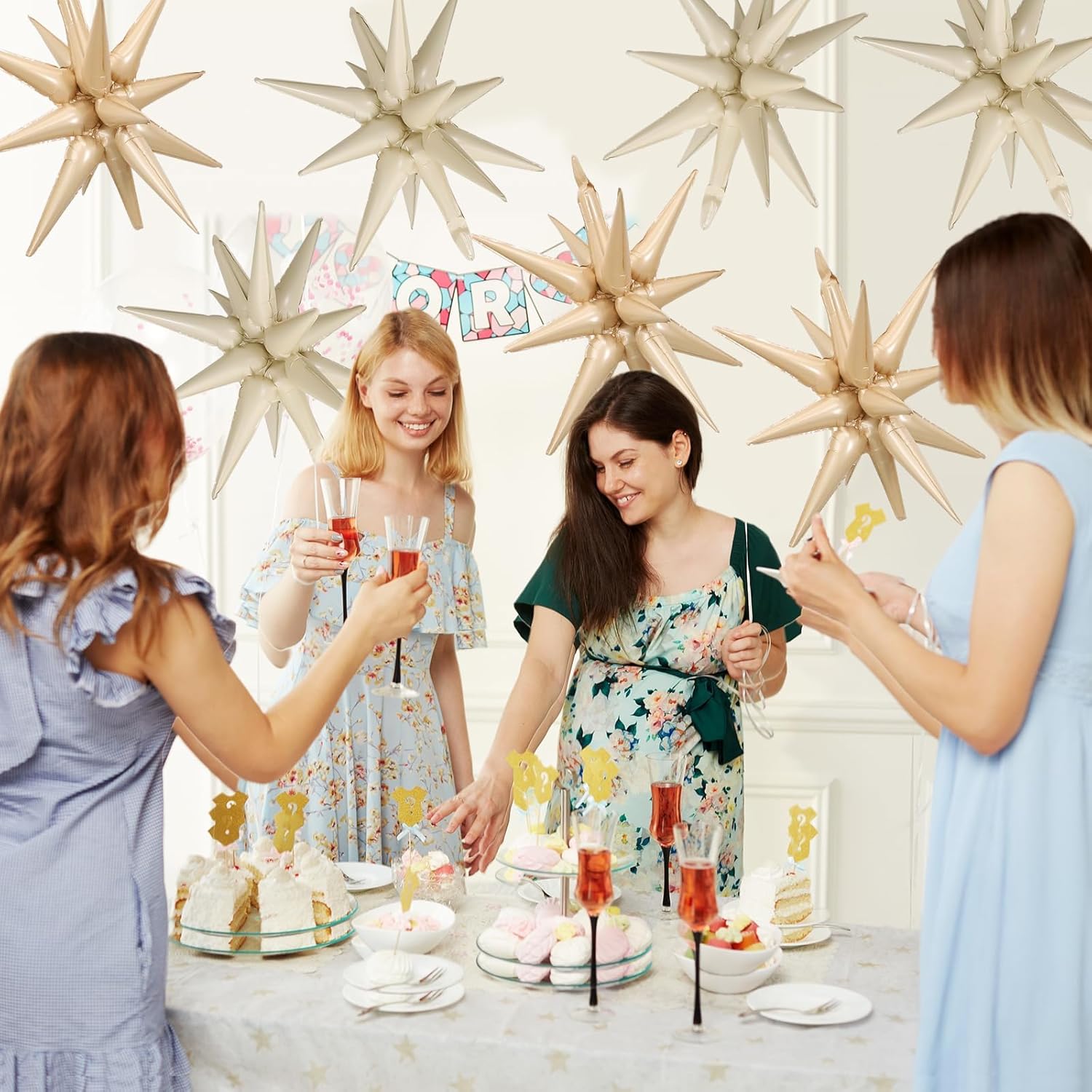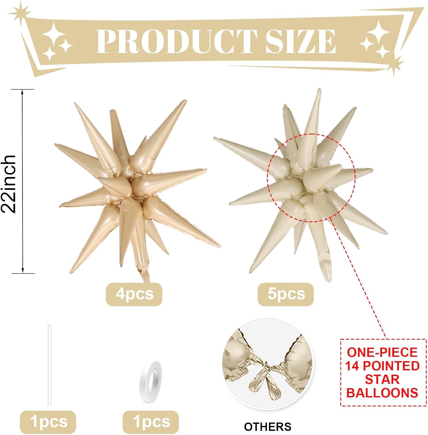 - Cream White Beige Star Balloons Set:Package include 9pcs 22Inch explosion star balloons(cream white x 5,beige x 4).Large enough to help you better decorate your party.