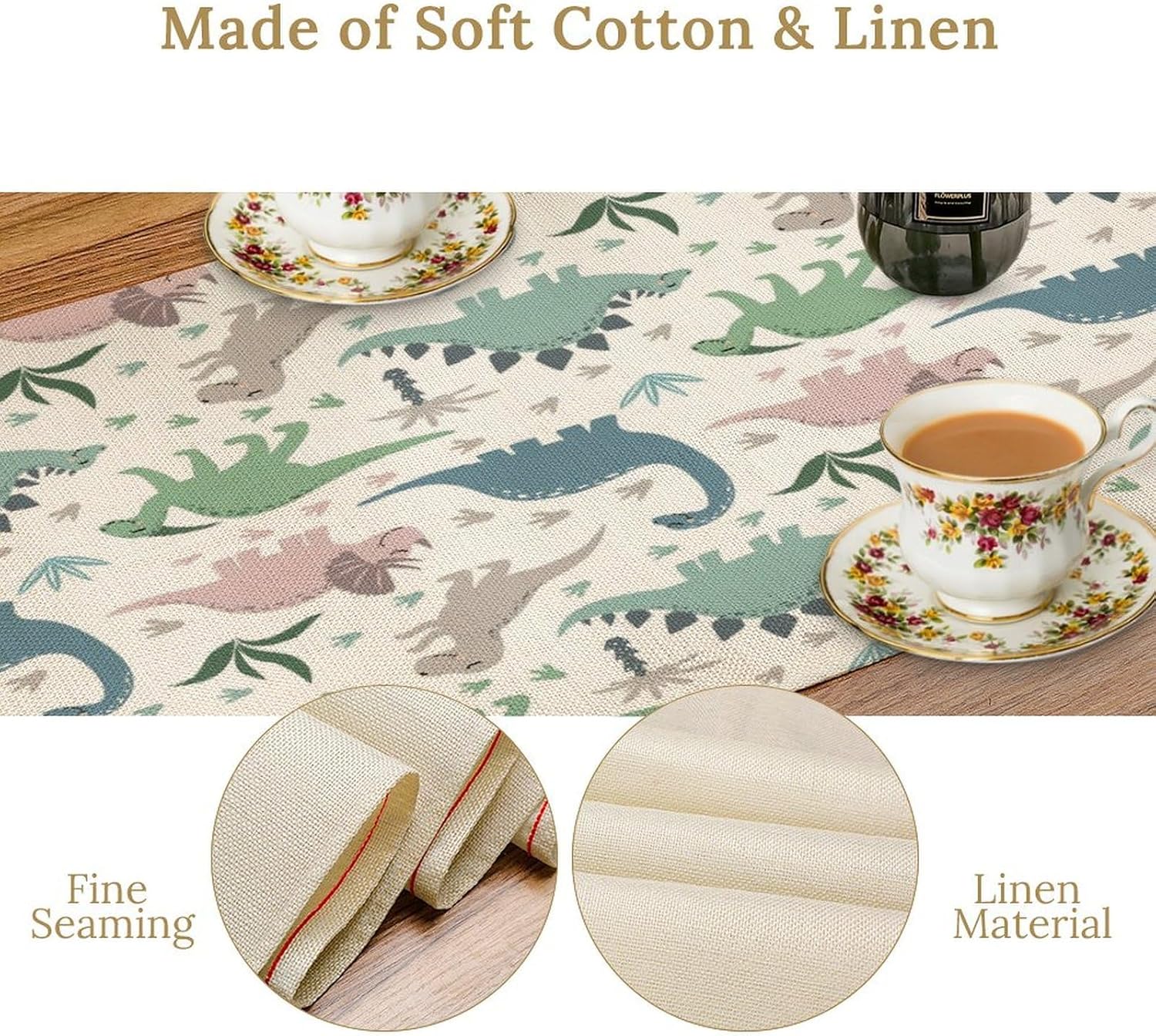 Cartoon Dinosaur Table Runner,Kids Boys Cute Colorful Animal Dino Abstract Print Tablecloth Burlap for Hotel Indoors Outdoor Dining Room Kitchen Holiday Party, 13x70in