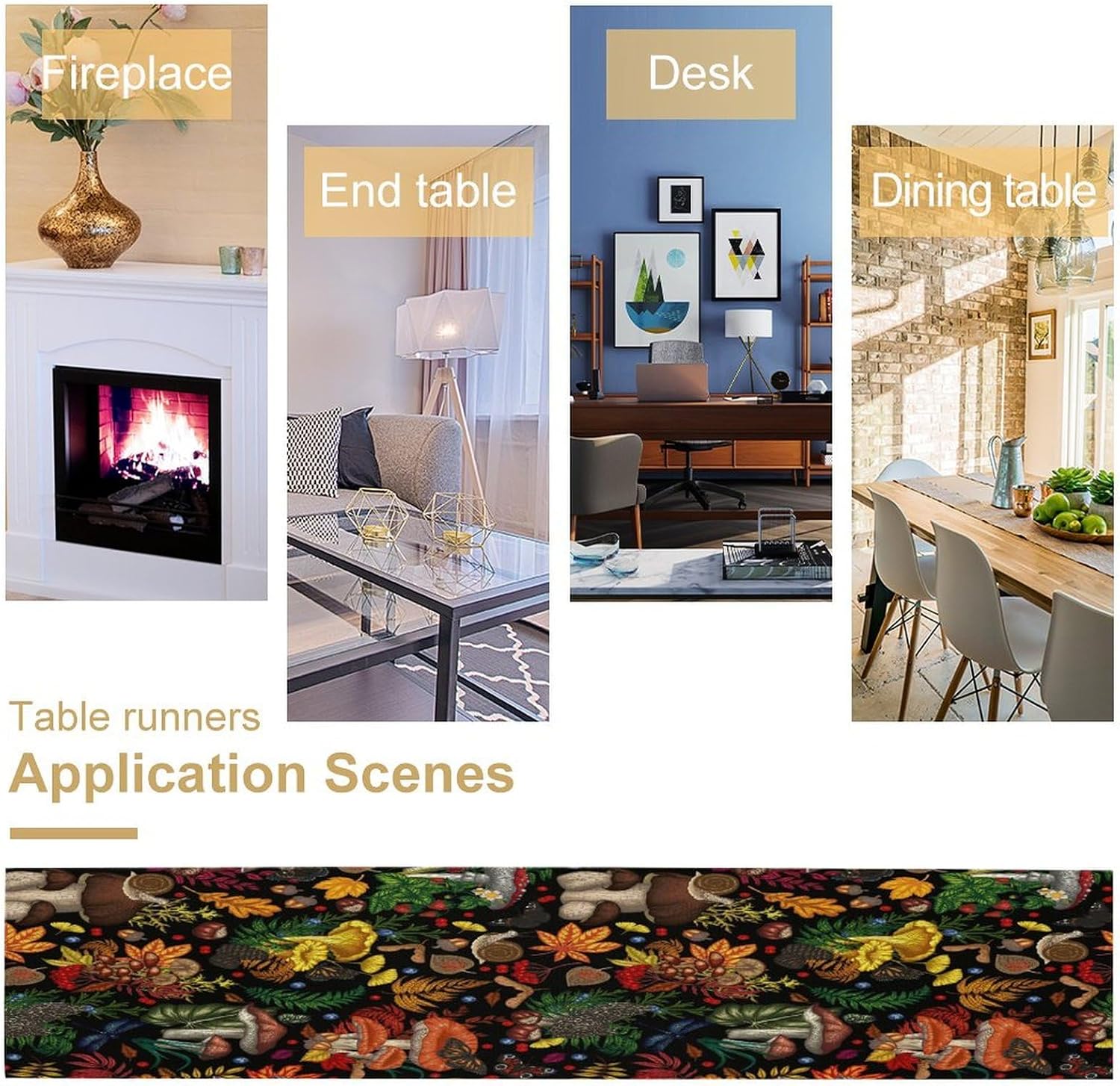 Nature Mushroom Table Runner,Retro Boho Floral Botanical Plant Forest Pattern Print Tablecloth Burlap for Hotel Indoors Outdoor Dining Room Kitchen Holiday Party, 13x36in