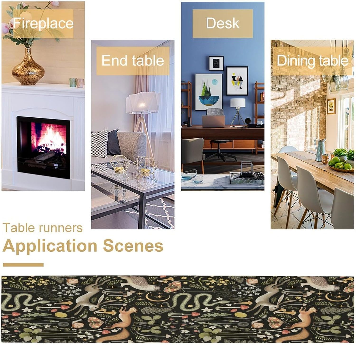 Mushroom Table Runner,Vintage Boho Forest Wild Animal Wildflower Botanical Plants Pattern Print Burlap Hotel Indoors Outdoor Dining Room Kitchen Holiday Party, 13x80in