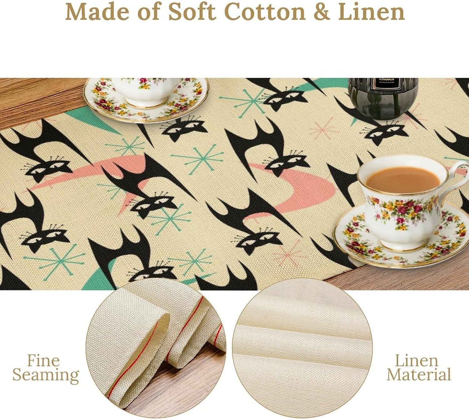 Mid Century Table Runner,Cat Geometric Stripe Colorful Abstract Pattern Print Tablecloth Burlap for Hotel Indoors Outdoor Dining Room Kitchen Holiday Party, 13x36in