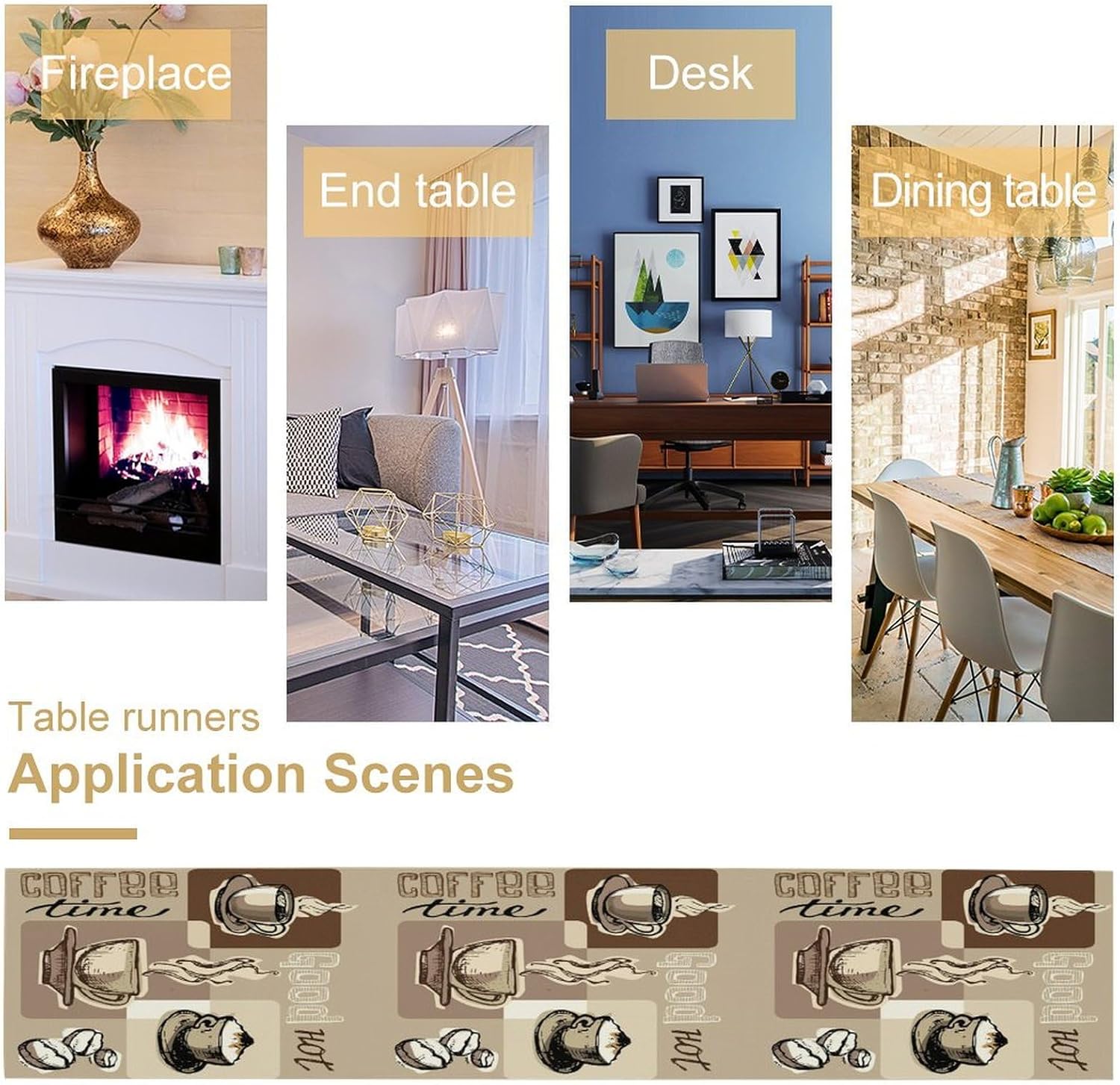 Coffee Table Runner,Vintage Style Coffee Cup Bean Abstract Theme Pattern Print Tablecloth Burlap for Hotel Indoors Outdoor Dining Room Kitchen Table Decor, 13x80in