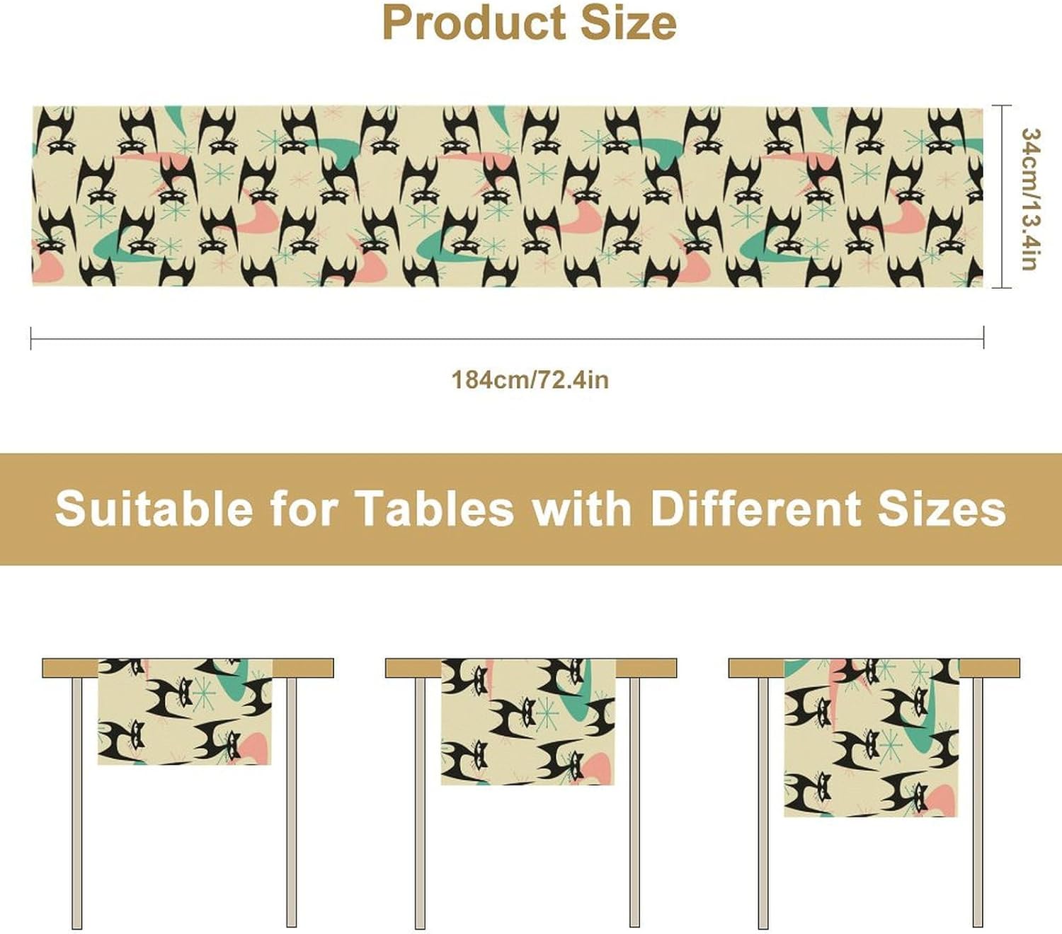 Mid Century Table Runner,Cat Geometric Stripe Colorful Abstract Pattern Print Tablecloth Burlap for Hotel Indoors Outdoor Dining Room Kitchen Holiday Party, 13x90in