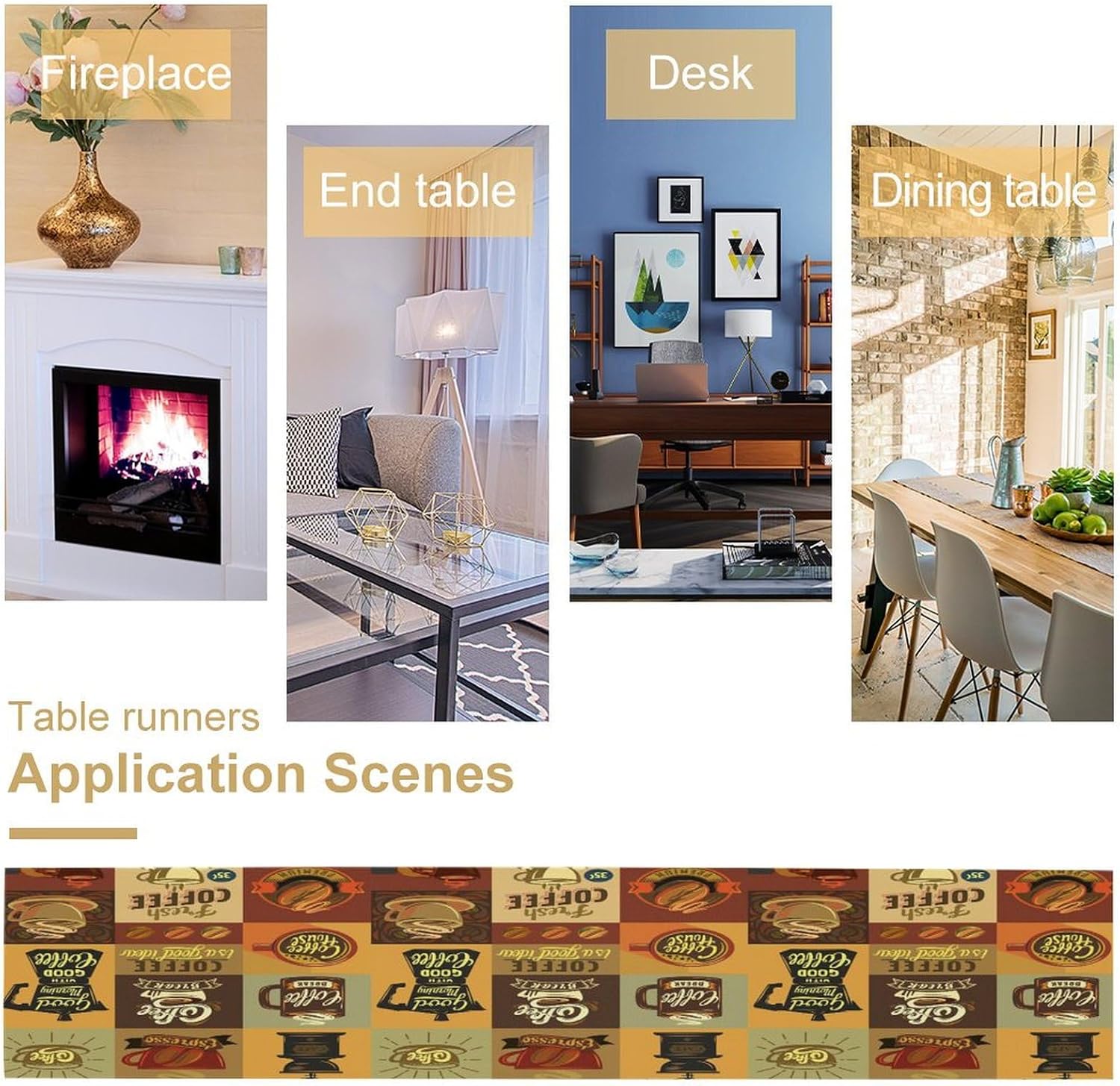 Coffee Table Runner,Vintage Style Coffee Beans Cups Theme Design Pattern Print Tablecloth Burlap for Hotel Indoors Outdoor Dining Room Kitchen Holiday Party, 13x108in