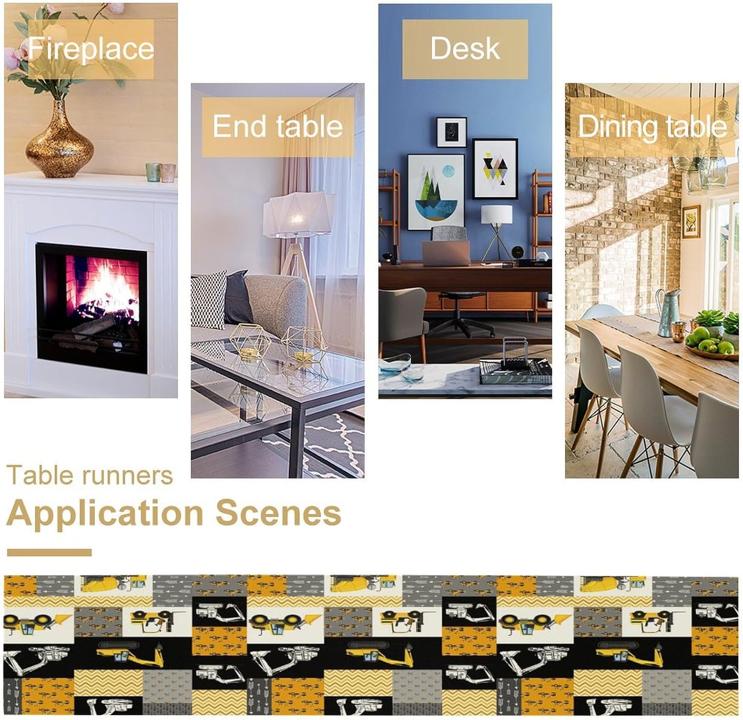 Excavator Table Runner,Boys Kids Construction Vehicles Equipment Trucks Cartoon Car Tablecloth Burlap for Hotel Indoors Outdoor Dining Room Kitchen Holiday Party, 13x70in