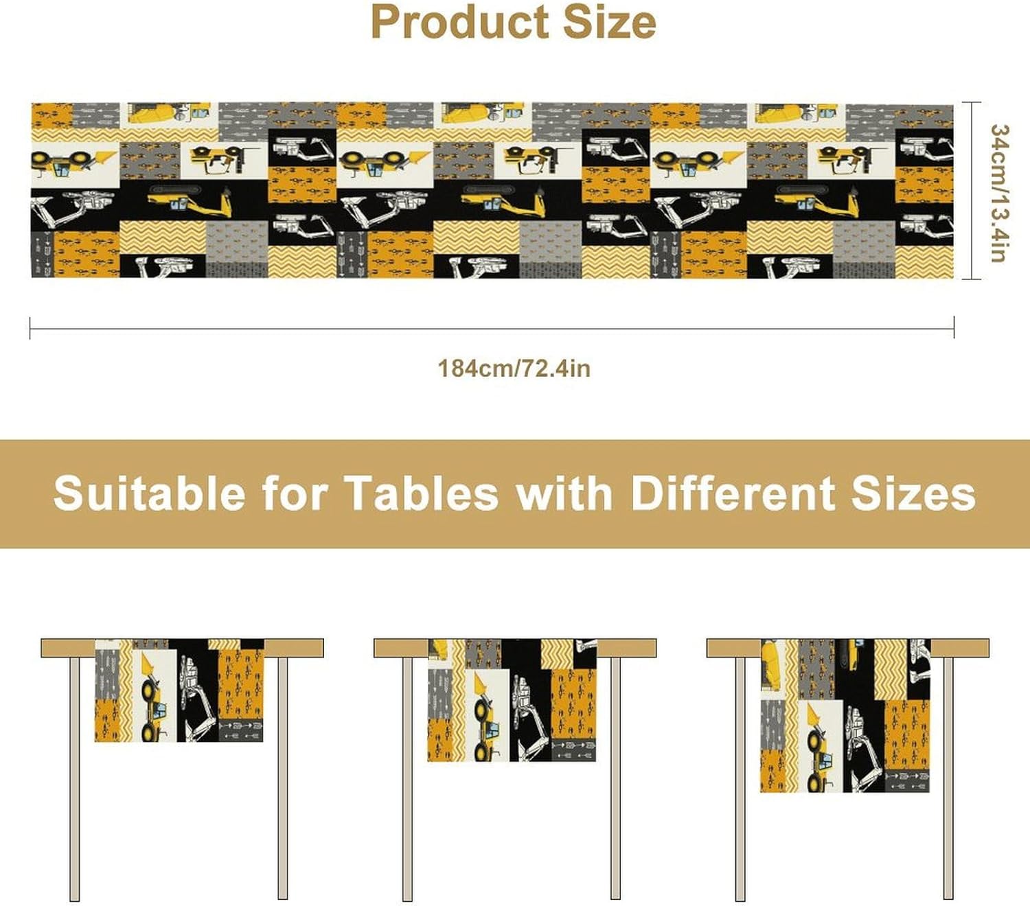 Excavator Table Runner,Boys Kids Construction Vehicles Equipment Trucks Cartoon Car Tablecloth Burlap for Hotel Indoors Outdoor Dining Room Kitchen Holiday Party, 13x90in