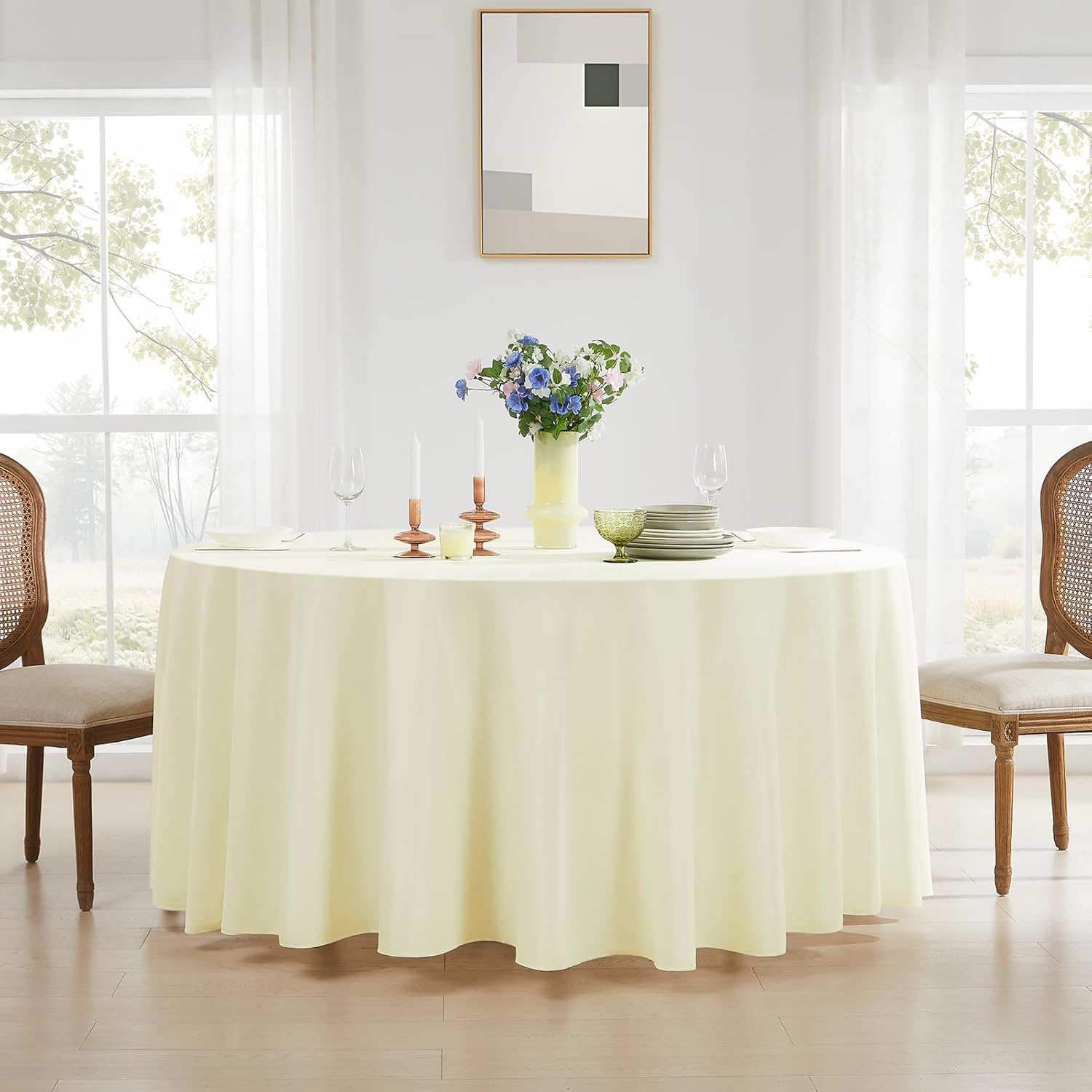Round Tablecloth 132 Inch 2 Pack Ivory Tablecloths Washable Decorative Linen Polyester Table Clothes Cover for Dining Table Banquets Buffet Parties and Wedding