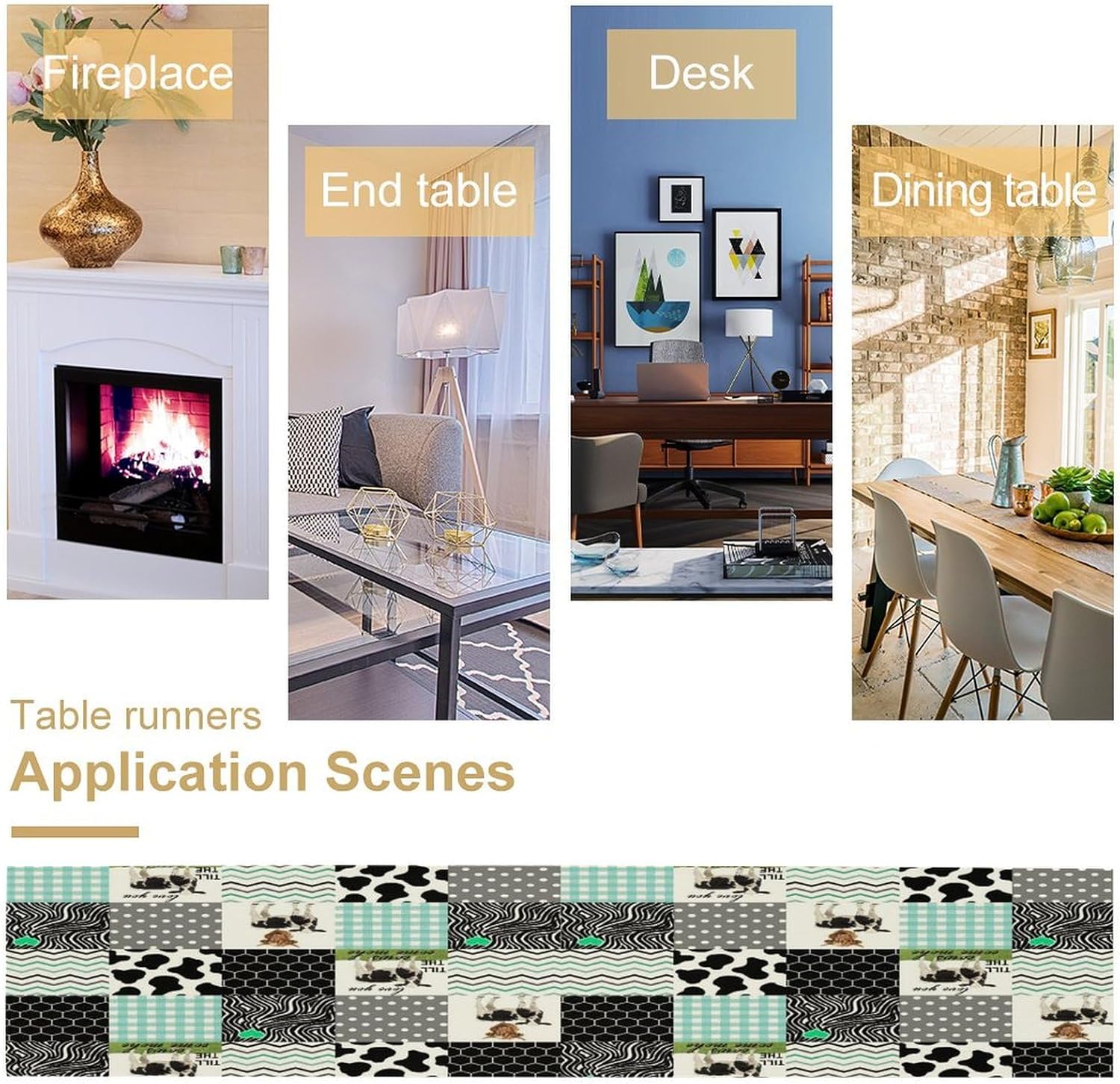Cute Cow Print Table Runner,Farm Animals Honeycomb Plaid Stripes Cowhide Pattern Tablecloth Burlap for Hotel Indoors Outdoor Dining Room Kitchen Table Decor, 13x108in