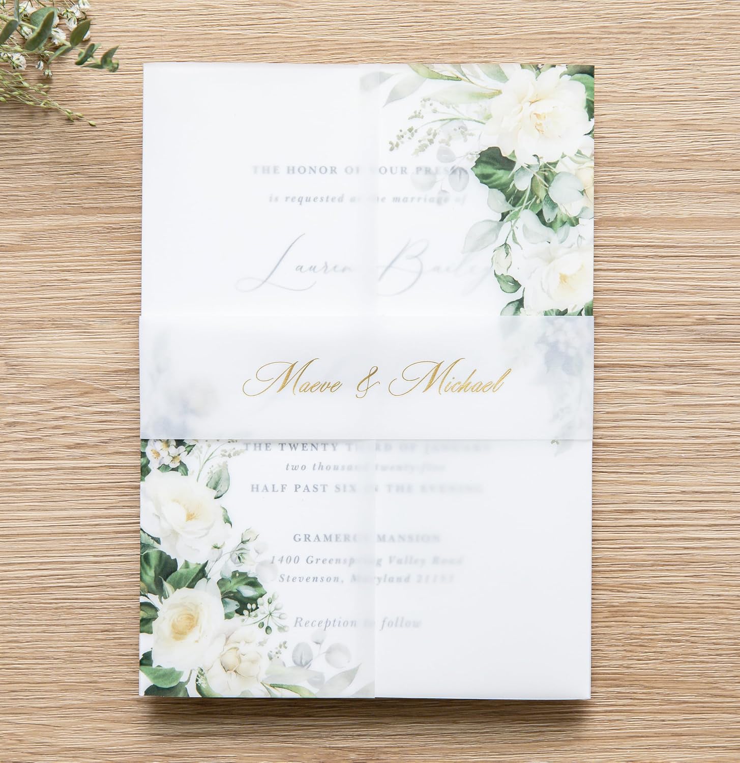 - 【What's Included】: A bulk quantity of 50 white floral vellum jackets for invitations