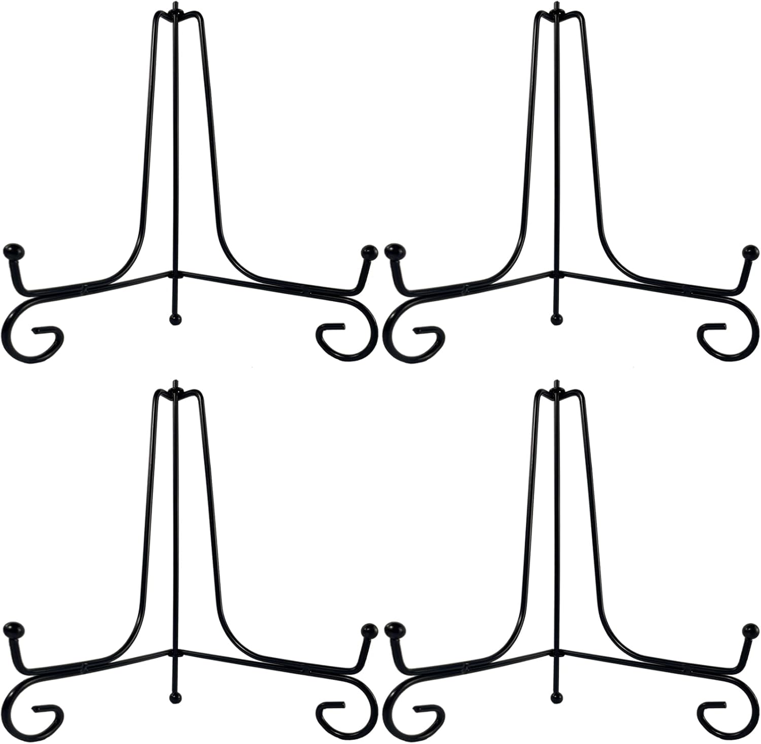 4PCS Premium Black Iron Plate Stands for Display, 8 Inch, Decorative Solid Metal Plate Holders for Displaying, Mini Easel, Frame, Book, Card, Plaque, Bowl, Picture Stands