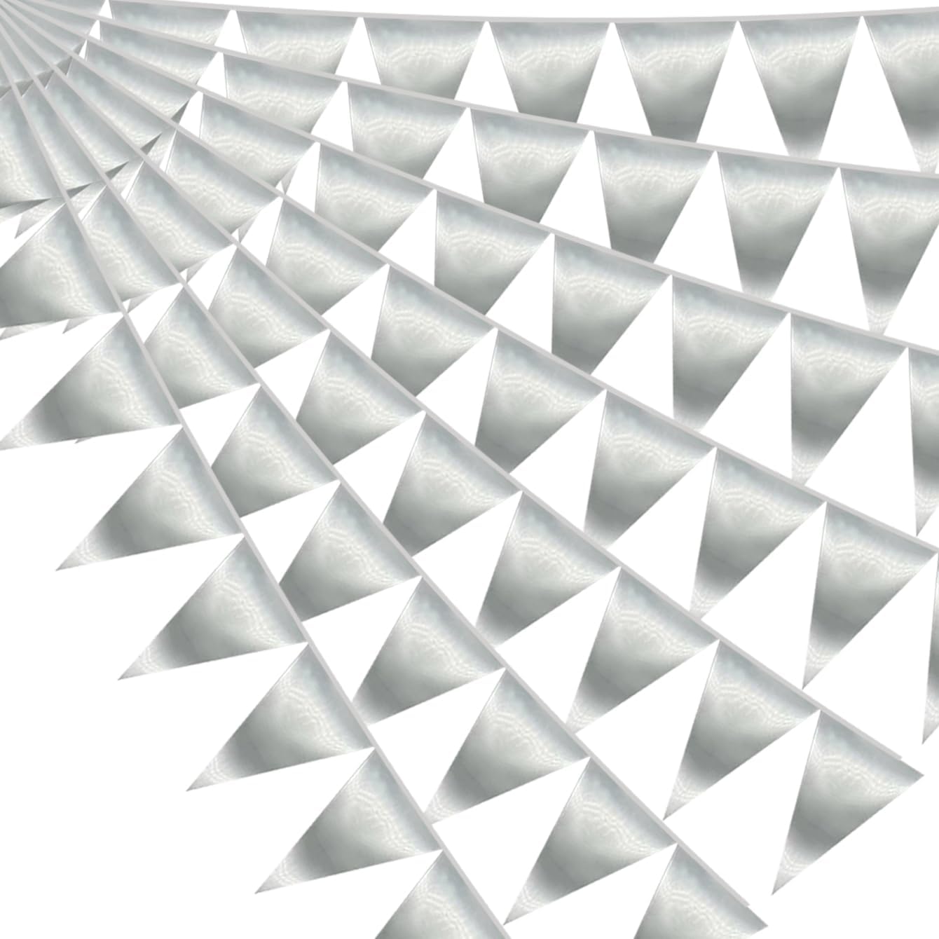 - 【Silver Pennant Bunting Set】: The total length of the Silver Triangle banner is 130 feet, divided into4 strips, each 32.8 feet long. Each Pennant Banner 80Flag Size: 7.87''/20cm width x 11.8''/30cm height for birthday decorations many occasions, and so on