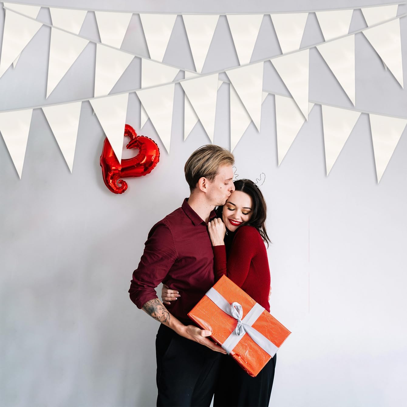 40M/130FT White Triangle Pennant Banner Flag Metallic Fabric Bunting Garland for Christmas Graduation Wedding Engagement Anniversary Bachelorette Birthday Bridal Shower Valentines Hen Party Supplies
