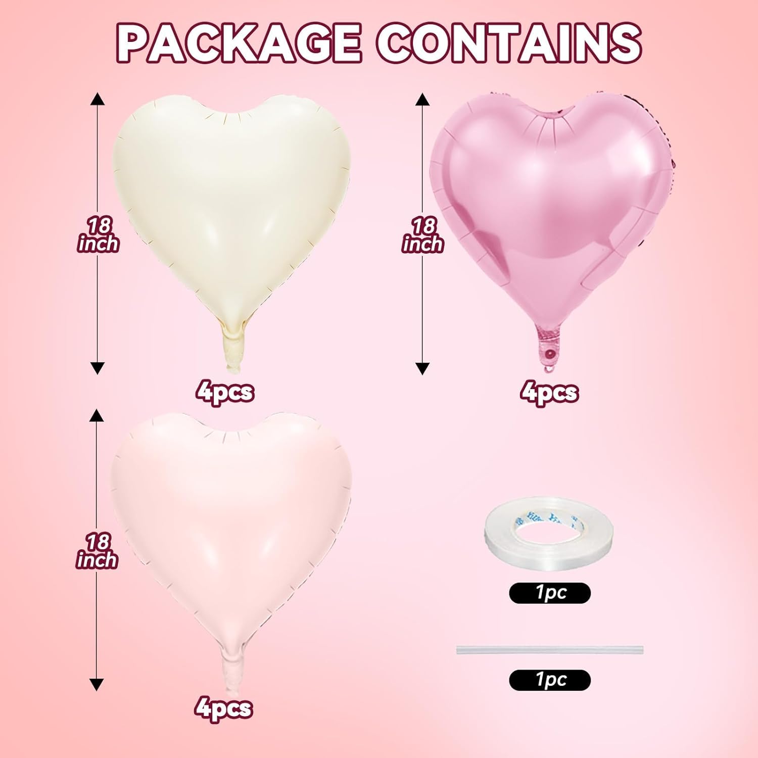 - Pink White Heart Balloons:This 18 inches heart shaped balloons includes 4* pink heart balloons, 4* pastel pink heart balloons, 4* white heart balloons, 1* ribbon, 1*straw, adding romance and warmth to your celebration. These large heart balloons will be the highlight of your party decorations, creating an atmosphere of love for everyone.