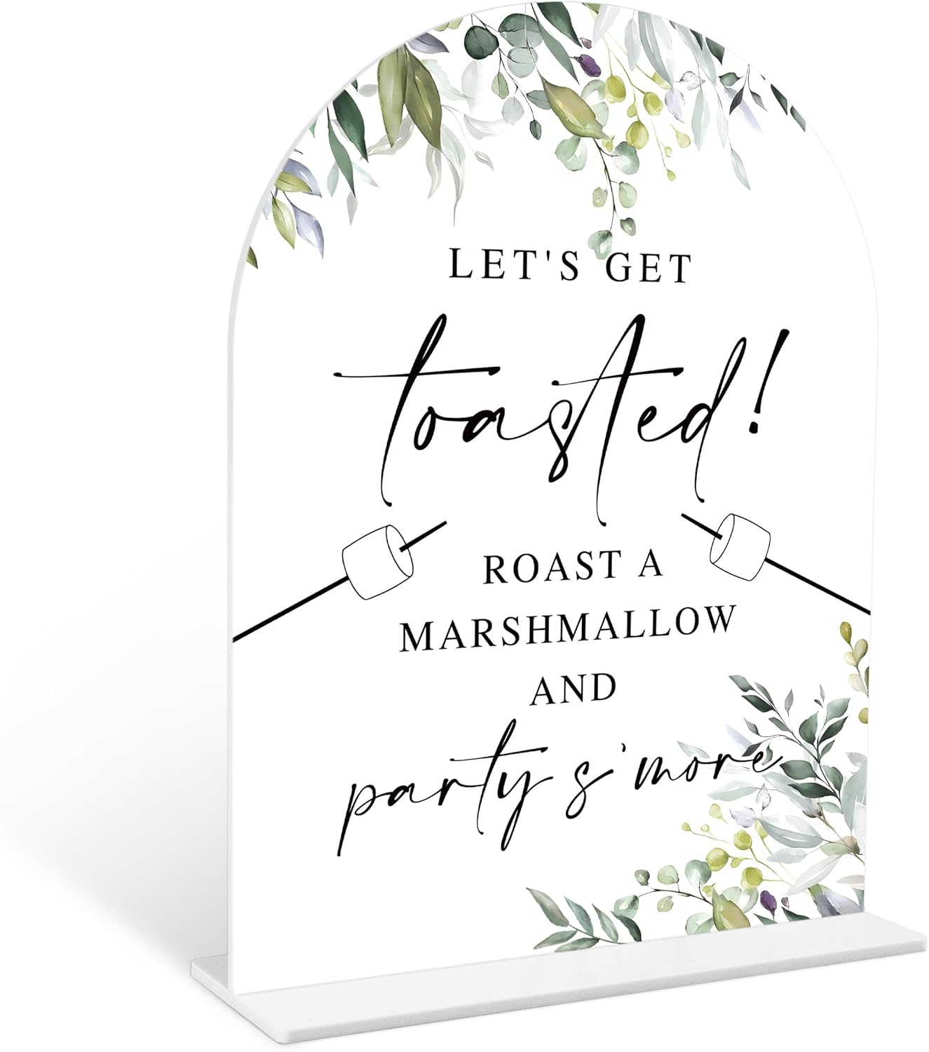 Greenery S'mores Bar Sign, 6 x 8 Inch White Arch Acrylic Wedding Sign with Holder, Wedding Sign for Ceremony and Reception, Wedding Decoration, Wedding Supplies - LY20