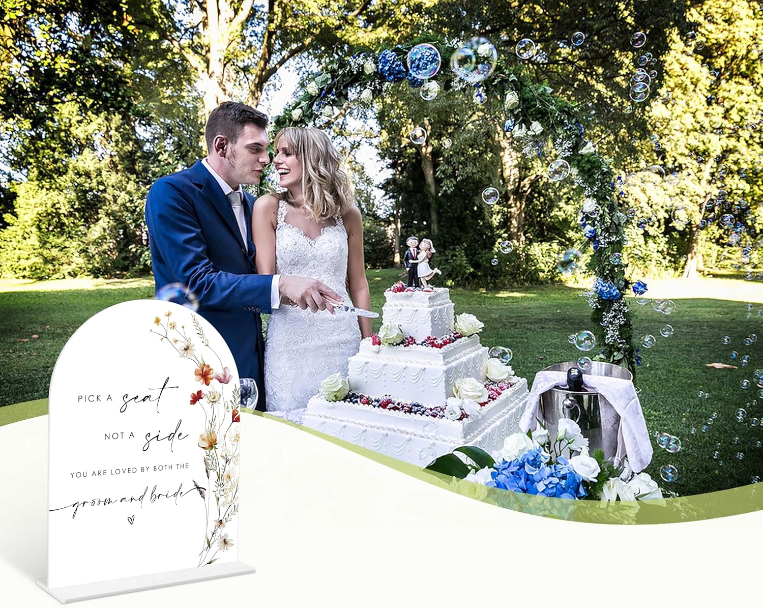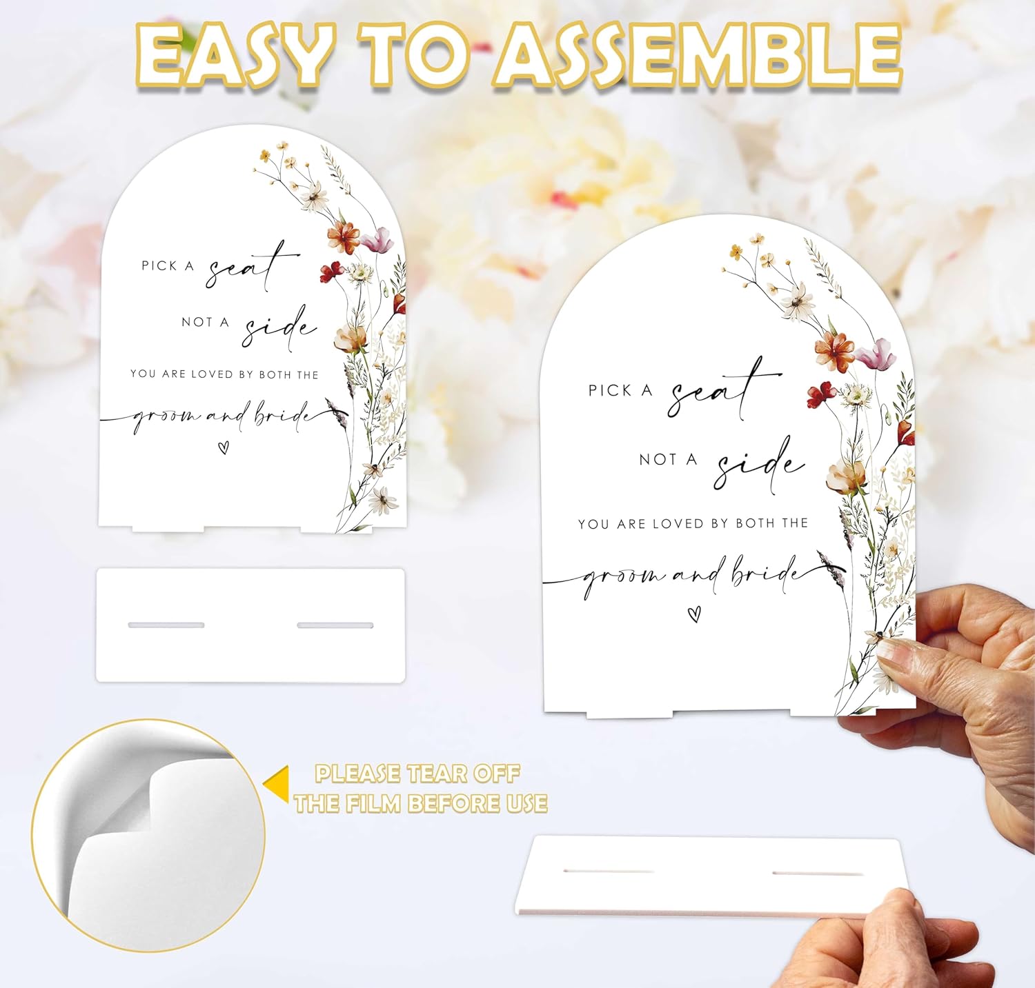 Boho Floral Pick a Seat Not a Side Sign, 6 x 8 Inch White Arch Acrylic Wedding Sign with Holder, Wedding Sign for Ceremony and Reception, Wedding Decoration, Wedding Supplies - BX18