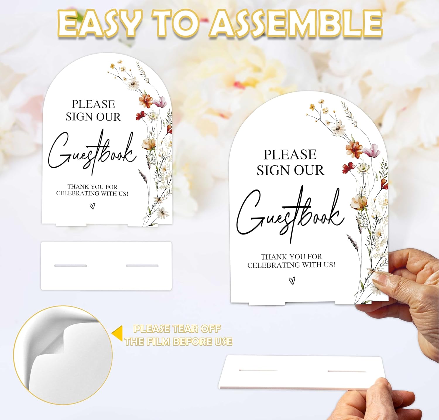 - Excellent Quality: The wedding sign is made of high-quality acrylic material, exquisite workmanship, sturdy and durable. There is a protective film on the back of the sign and both sides of the stand, please tear it off when you are ready to use it.