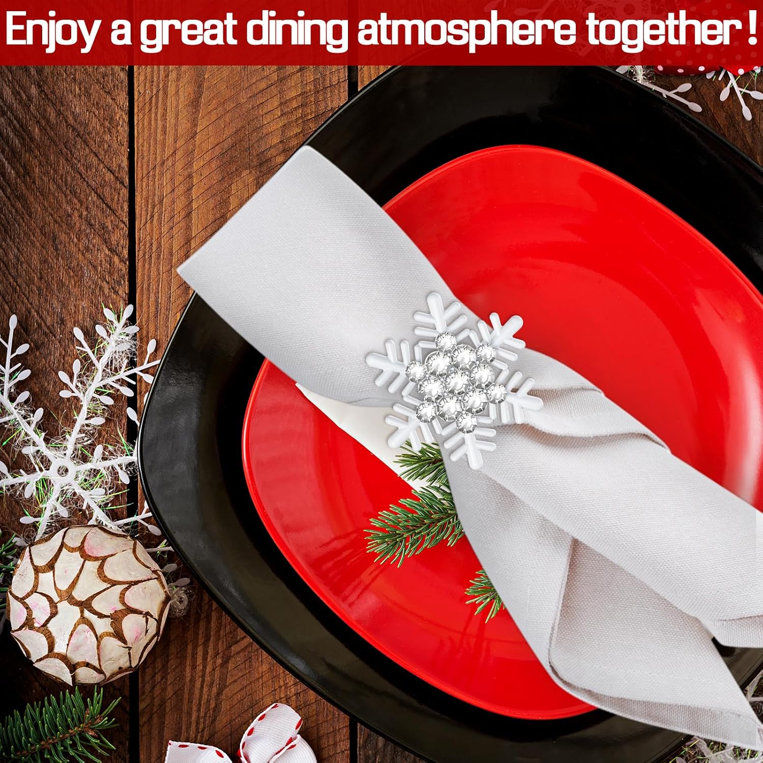 - Sturdy Material & Beautiful Design: These adorable Christmas napkin rings are made of metal which are sturdy and durable. Sparkling White rhinestones are set in the center of the snowflake. They shine in the light and add an elegant splash of color to your table.