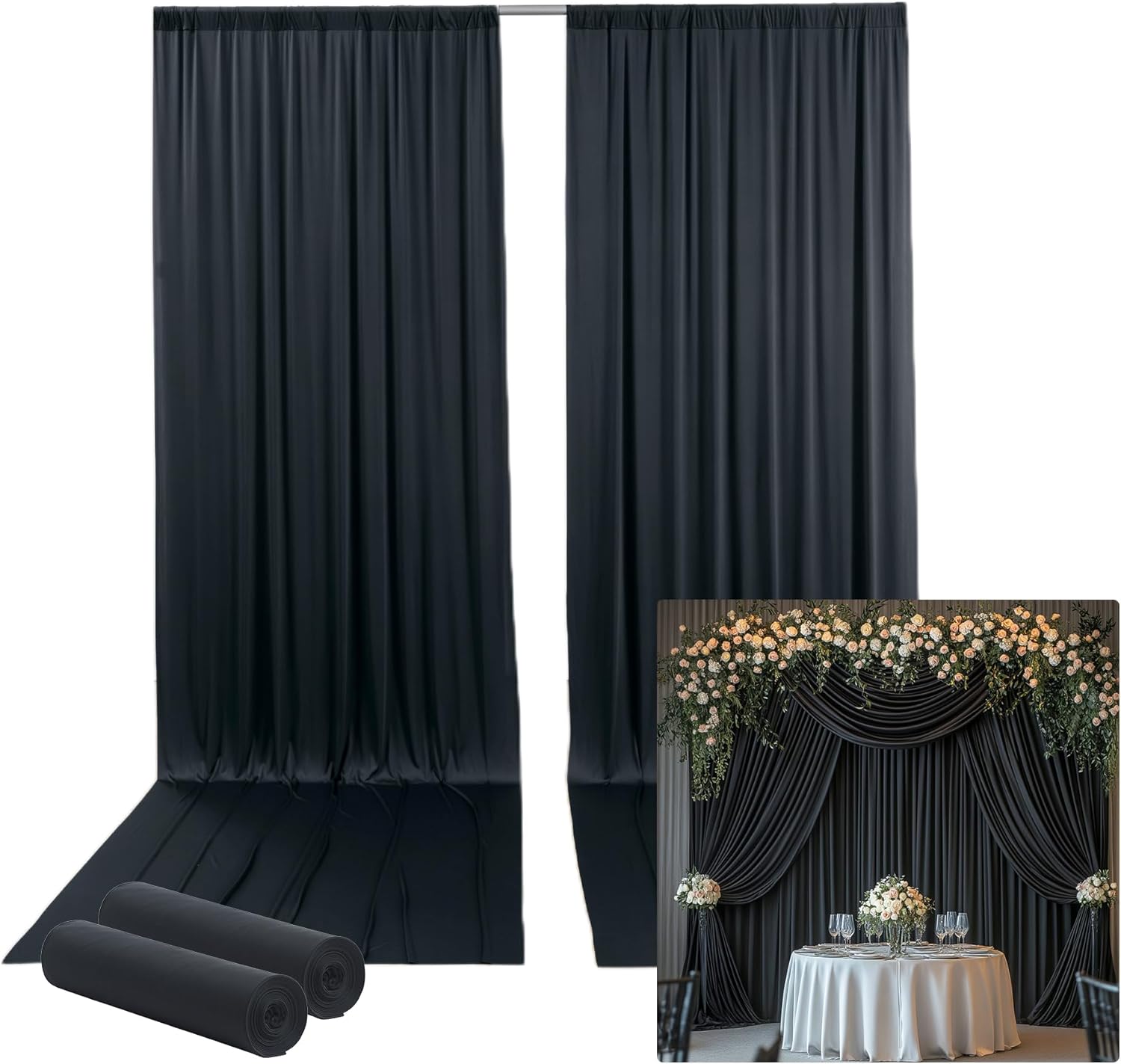 - Wrinkle Free Black Backdrop Curtain: This Black silky soft wedding backdrop for reception is made of wrinkle free material, known for its soft and silky texture, which will give you an extraordinary feeling of touch. The backdrop is exquisitely sewn, smooth and durable fpolyester with natural drape, add more elegance and romance to your weddings.