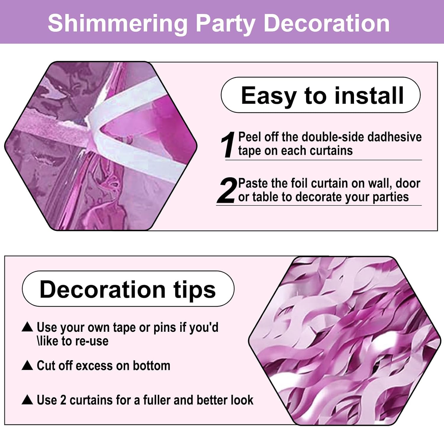 - Easy To Assemble | Strong Adhesive | Not Easy Fade : The foil fringe curtain backdrop party decorations come with double-sided adhesive tape, easy to use, just tear off the back of adhesive tape, then paste this streamers backdrop curtains on the top of wall, window, table, or as door fringe decoration.