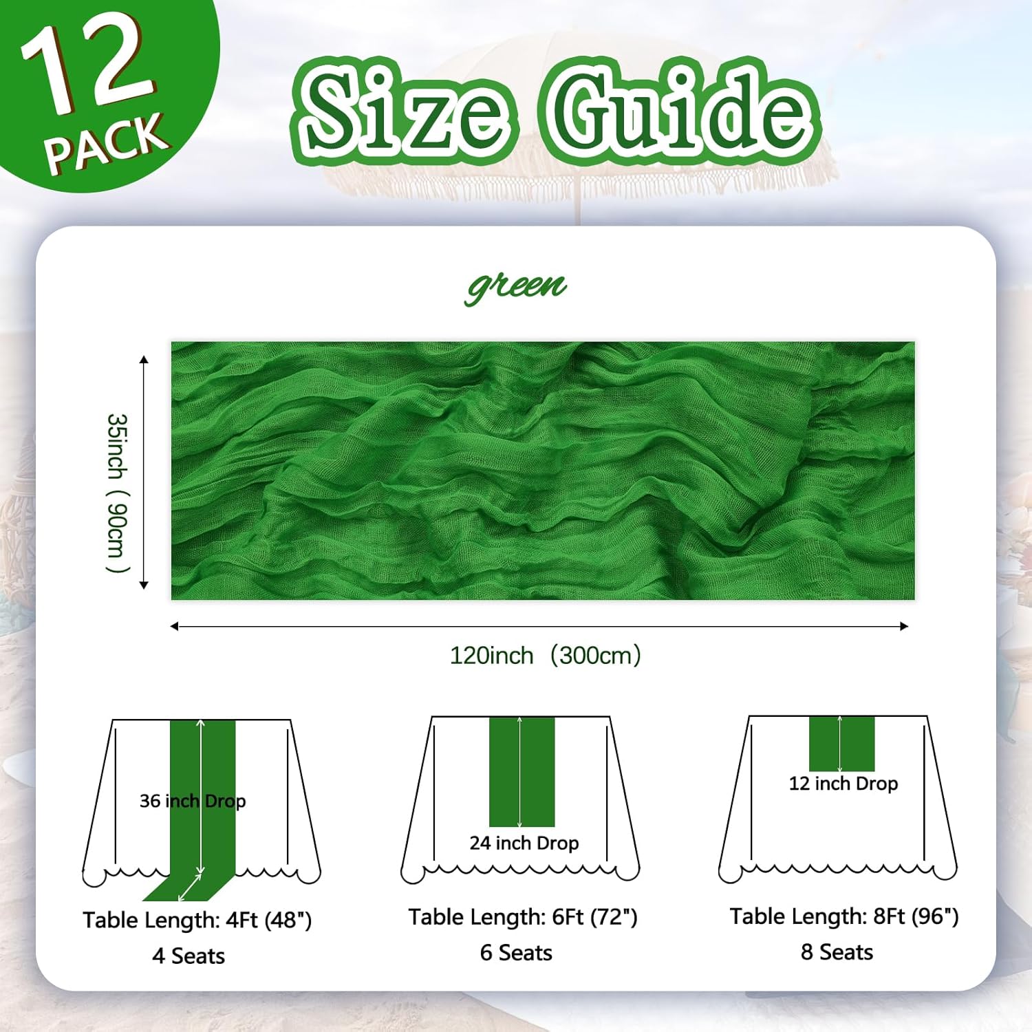 12 Pack Green Cheesecloth Table Runner 10ft Boho Gauze Fabric Cheese Cloth Table Runner 35 x 120 Inch Rustic Sheer Runner for Romantic Wedding Decor Baby Shower Party Table Centerpiece Decoration
