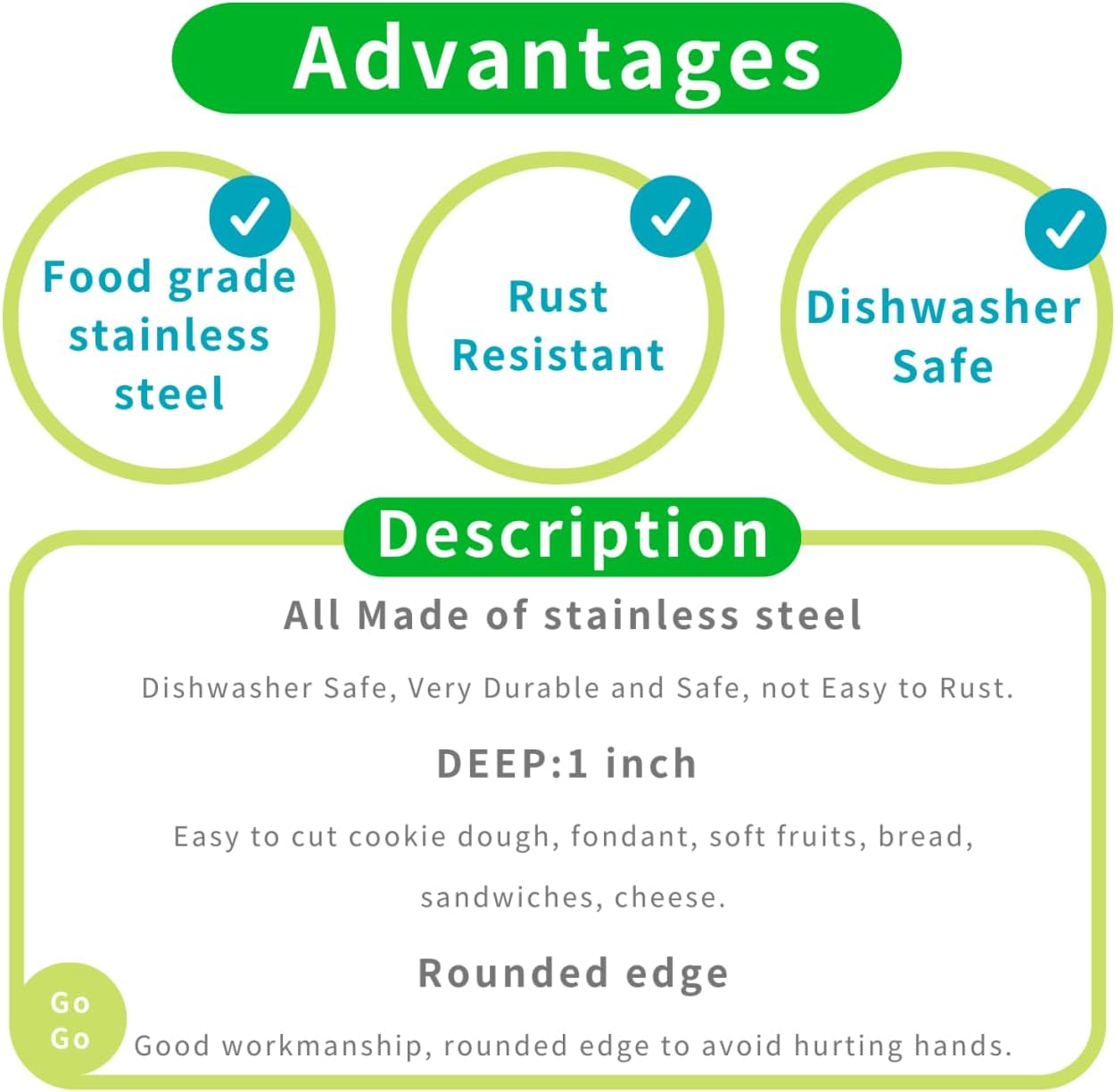 - DEEP:1 inch.Easy to cut cookie dough, fondant, soft fruits, bread, sandwiches, cheese. Easy to clean and cut.