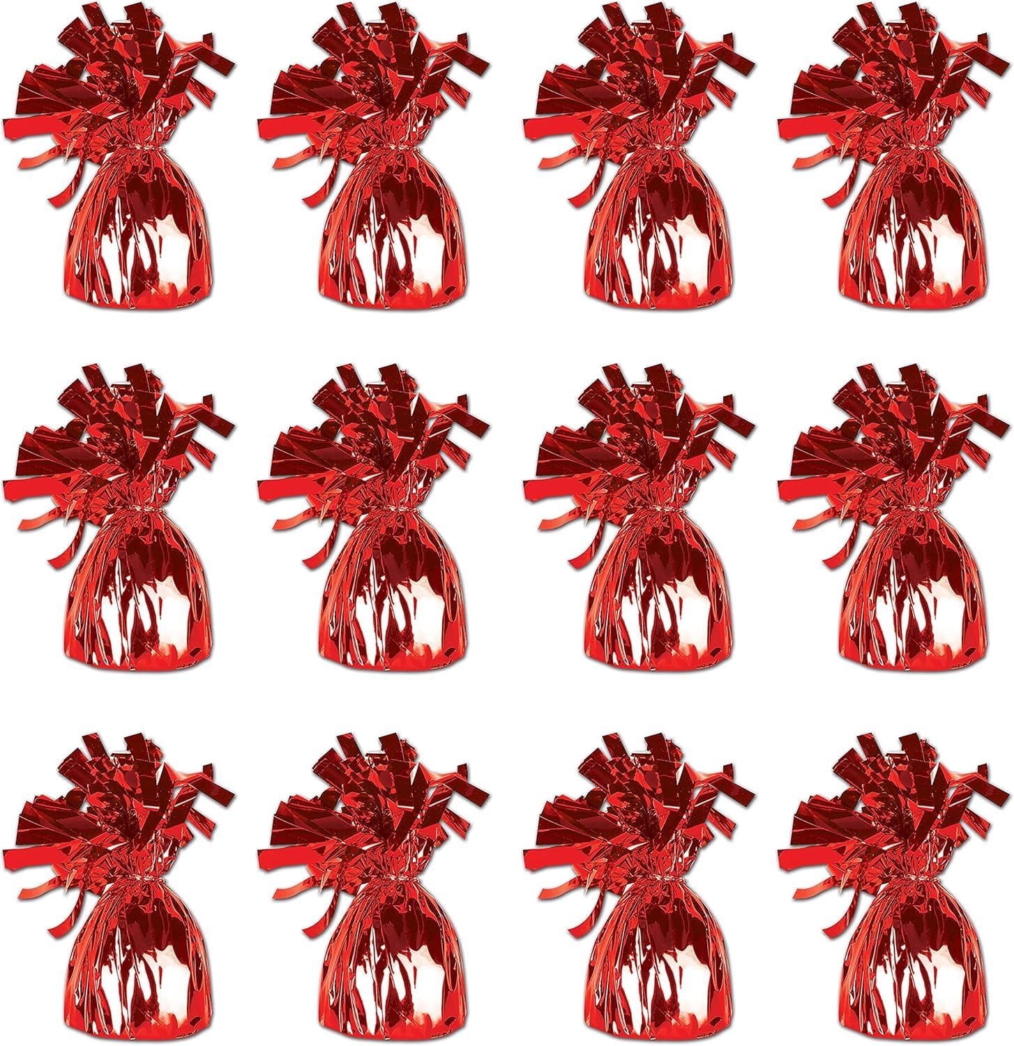 ROYALHOUSE Metallic Plastic Wrapped Balloon Weights for Party Decorations, 12 Pcs (Red)