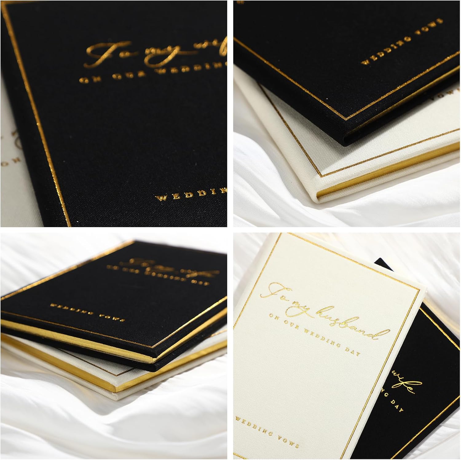 - Classic Color: these vow books features a classic black and white design that complements any wedding theme or style, and the elegant gold foil cover and soft fabric feel can add a touch of sophistication to your wedding decor