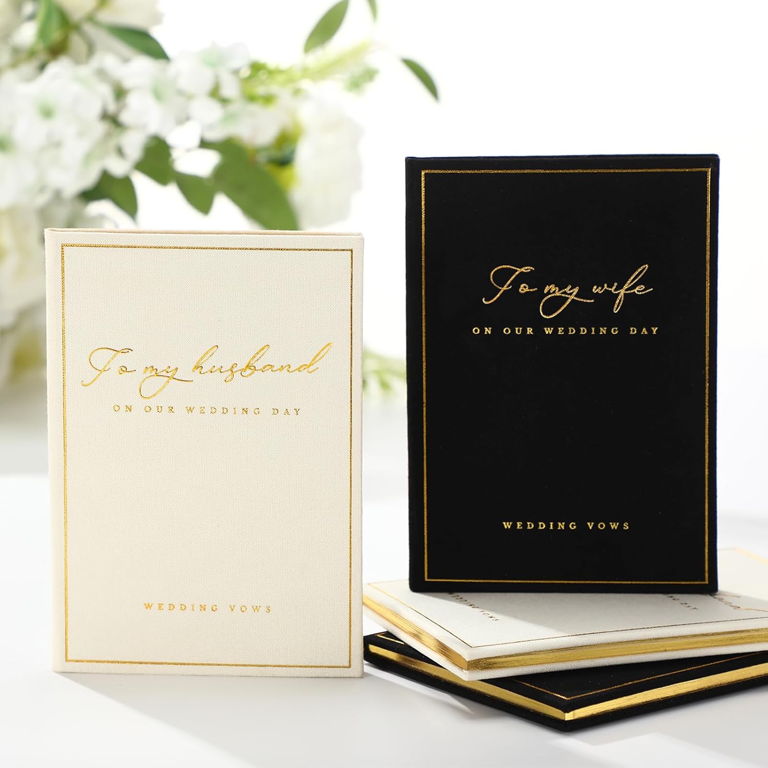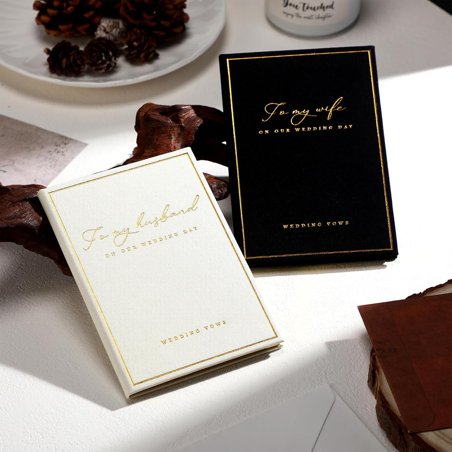 - Elegant Wedding Vow Books: you will receive two pieces wedding vow books, printed with [To my husband] and [To my wife]. These two books have gold foil cover and gold edges, which will add a refined and elegant feeling to the vow books. Whether you use them at the ceremony or keep them as souvenirs, these exquisite vow books are the nice souvenirs for exchanging vows on your special day
