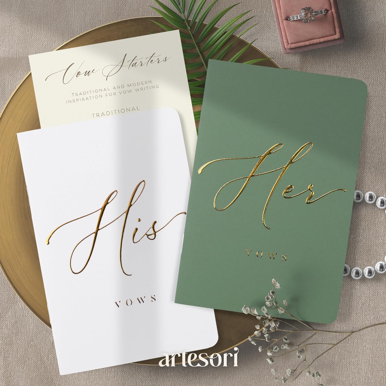 ARTESORI Wedding Vow Book for Her & Him, Soft Touch, Gold Engraving, 28 Lined Pages, Wedding Vow Books His and Hers, Wedding Essentials, Wedding Registry Gifts, His and Hers Gifts [Sage & White]