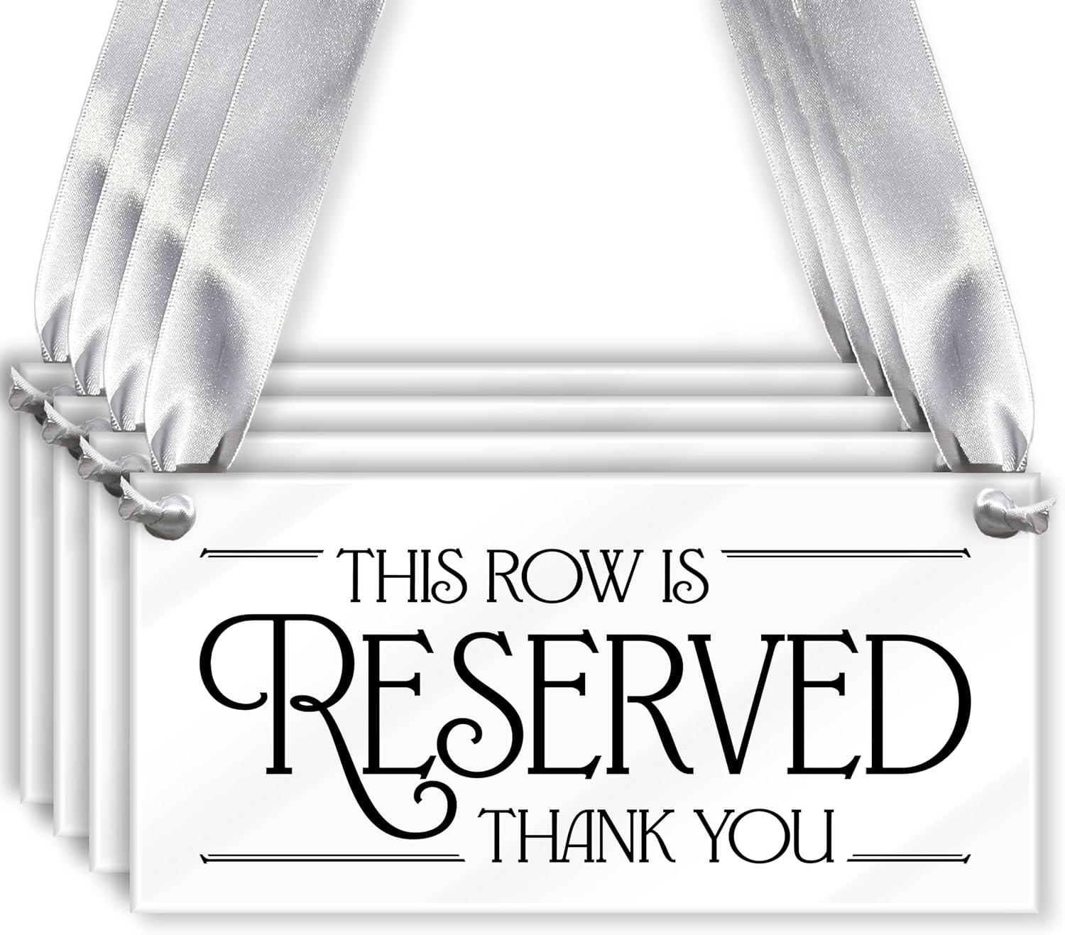 4 pcs Reserved Row Signs for Wedding, Acrylic Reserved Signs for Wedding Decor, 7.75x3.75 Reserve Seating Sign, Hanging Reserve Table Sign for Chairs Pews & Family, Includes Ribbon, Made in USA