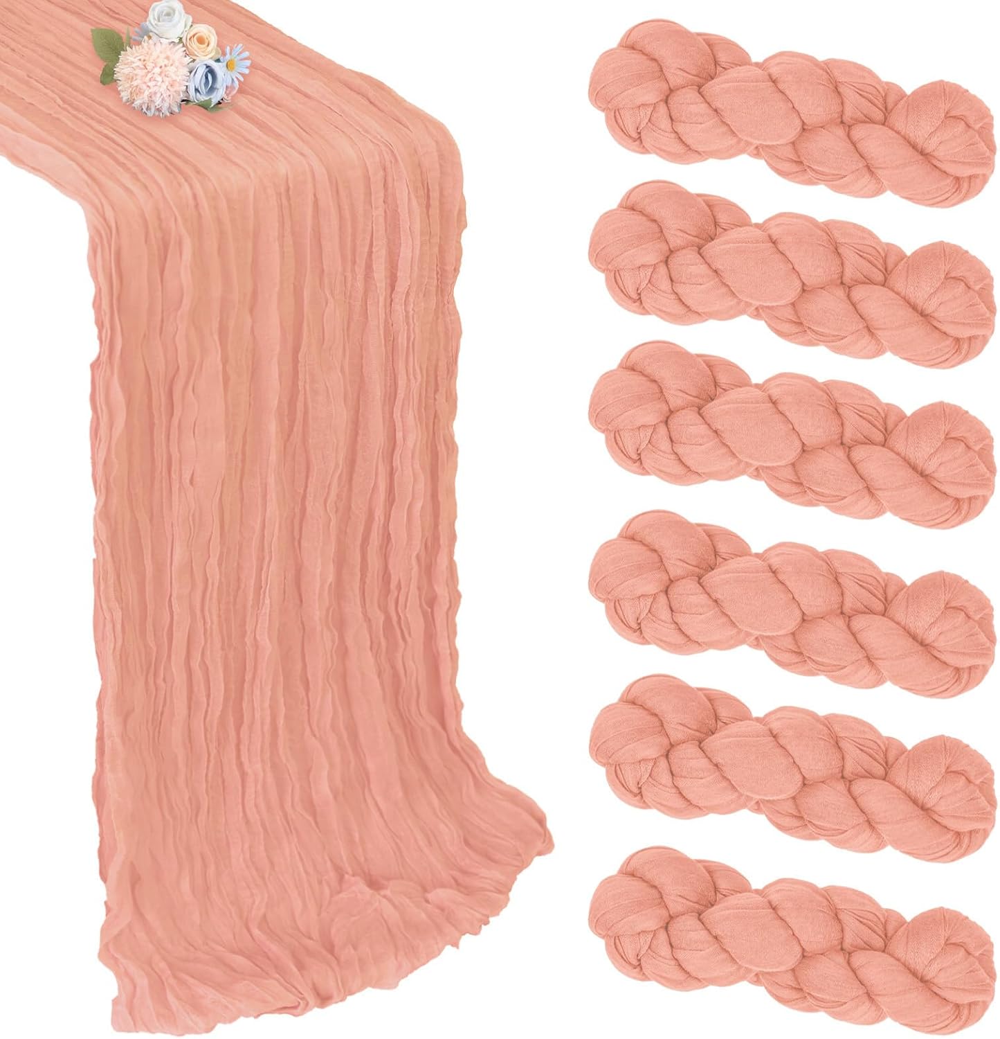 6 Pack Peach Cheesecloth Table Runner 10ft Boho Gauze Fabric Cheese Cloth Table Runner 35 x 120 Inch Rustic Sheer Runner for Romantic Wedding Decor Baby Shower Party Table Centerpiece Decoration