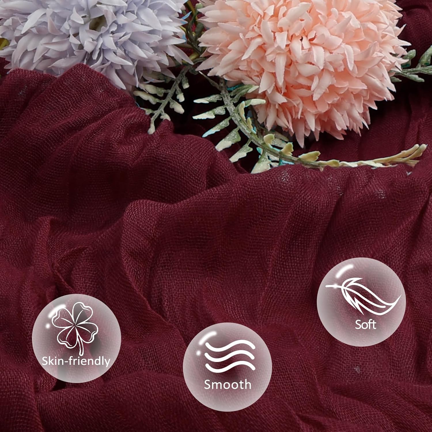 12 Pack Burgundy Cheesecloth Fall Table Runner 10ft Boho Gauze Fabric Cheese Cloth Table Runner 35 x 120 Inch Rustic Sheer Runner for Romantic Wedding Decor Baby Shower Party Centerpiece Decoration