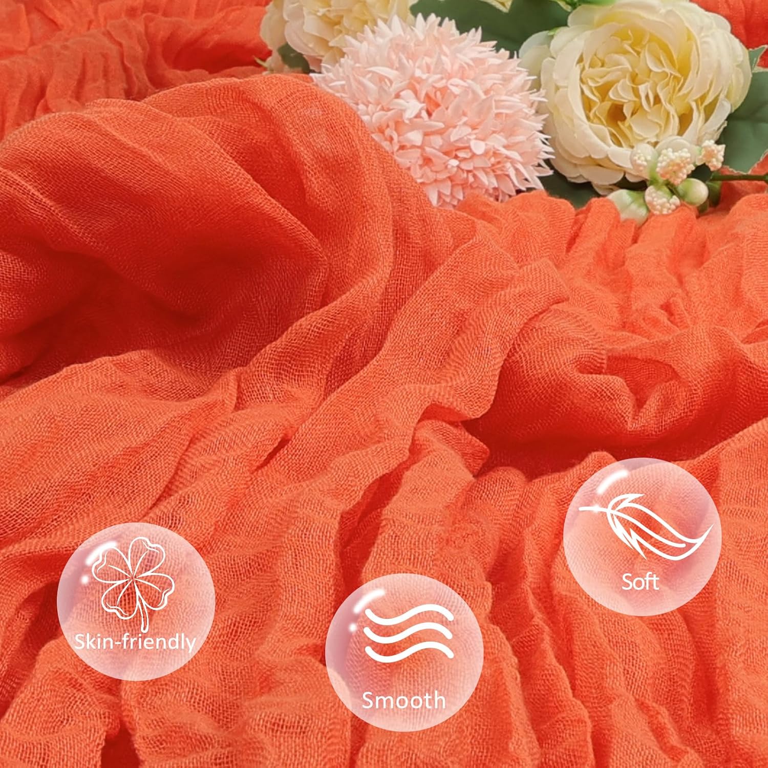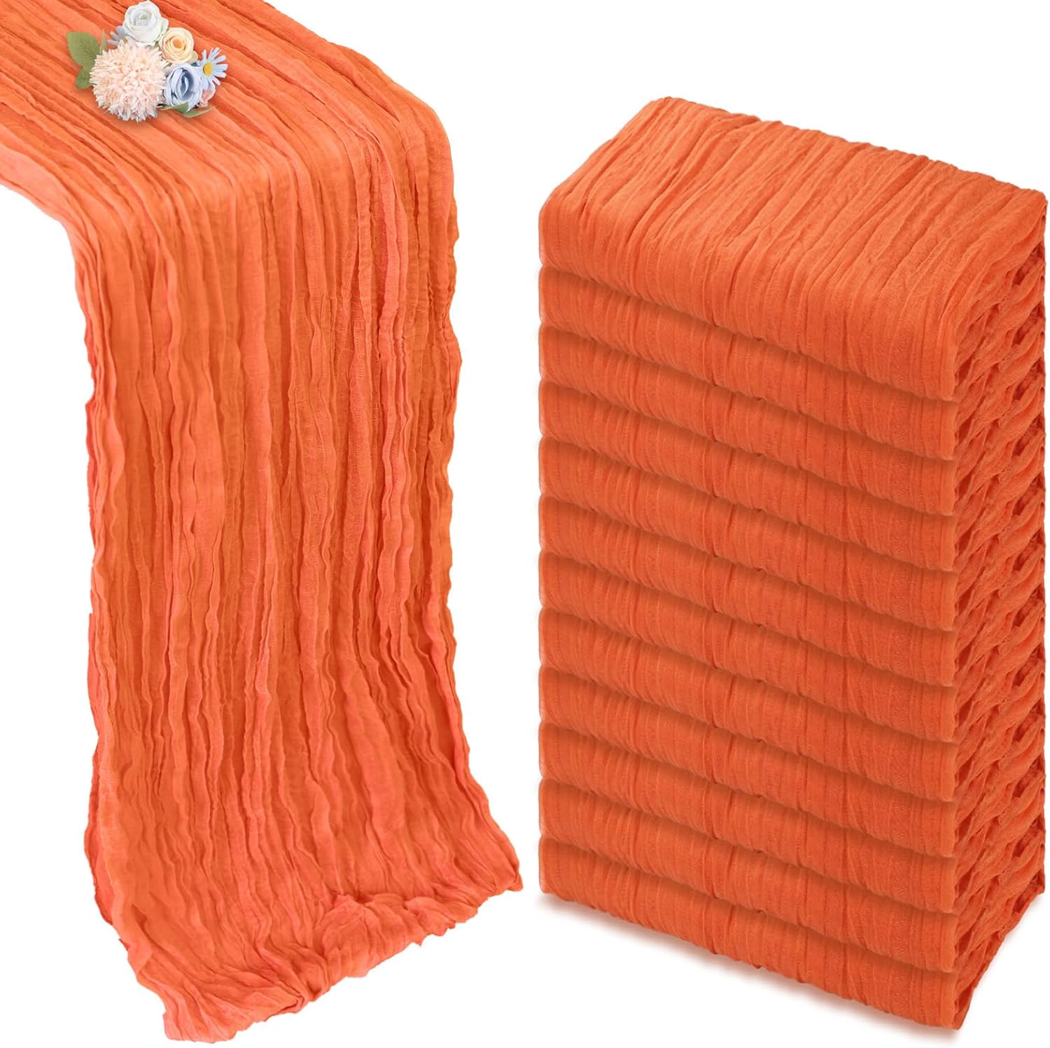 12 Pack Fall Thanksgiving Table Runner Orange 10ft Boho Gauze Fabric Cheesecloth Table Runner 35 x 120 Inch Rustic Sheer Runner for Wedding Home Décor Halloween Party Table Centerpiece Decorations