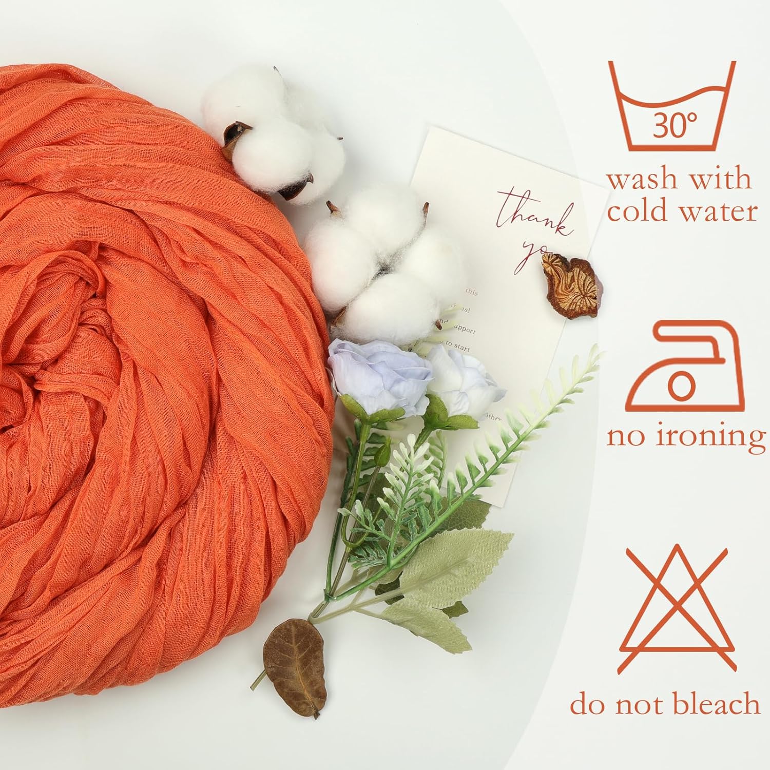 - 【Care Instructions】For The Vintage Orange Cheese Cloth Table Runner, It Is Recommended That You Put Them In A Laundry Bag For Machine Washing Or Hand Wash With Cold Water. To Preserve The Wrinkled Texture Of The Gauze Table Runners, Please Do Not Iron Or Bleach Table Runners. Also, Avoid Direct Exposure To The Sun To Prevent Fading, So That They Can Be Used For A Long Time.