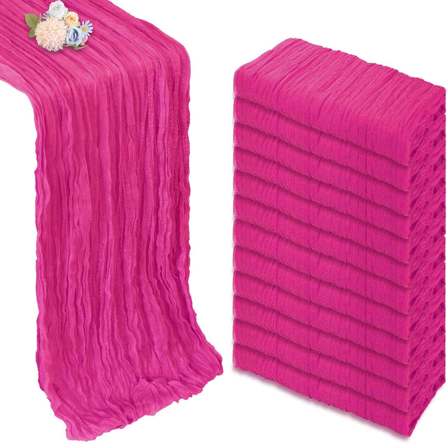 12 Pack Hot Pink Cheesecloth Table Runner 10ft Boho Gauze Fabric Cheese Cloth Table Runner 35 x 120 Inch Rustic Sheer Runner for Romantic Wedding Decor Baby Shower Party Table Centerpiece Decoration