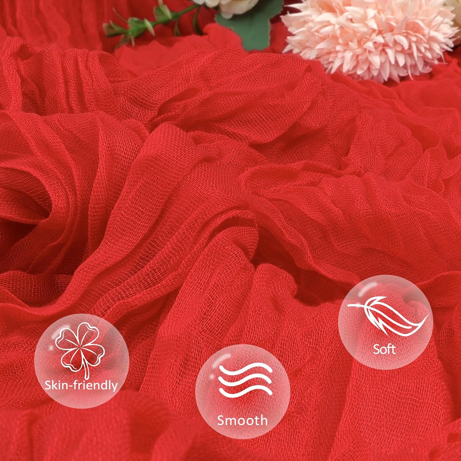 12 Pack Red Cheesecloth Christmas Table Runner 10ft Boho Gauze Fabric Cheese Cloth Table Runner 35 x 120 Inch Rustic Sheer Runner for Wedding Home Decor Holiday Party Table Centerpiece Decoration