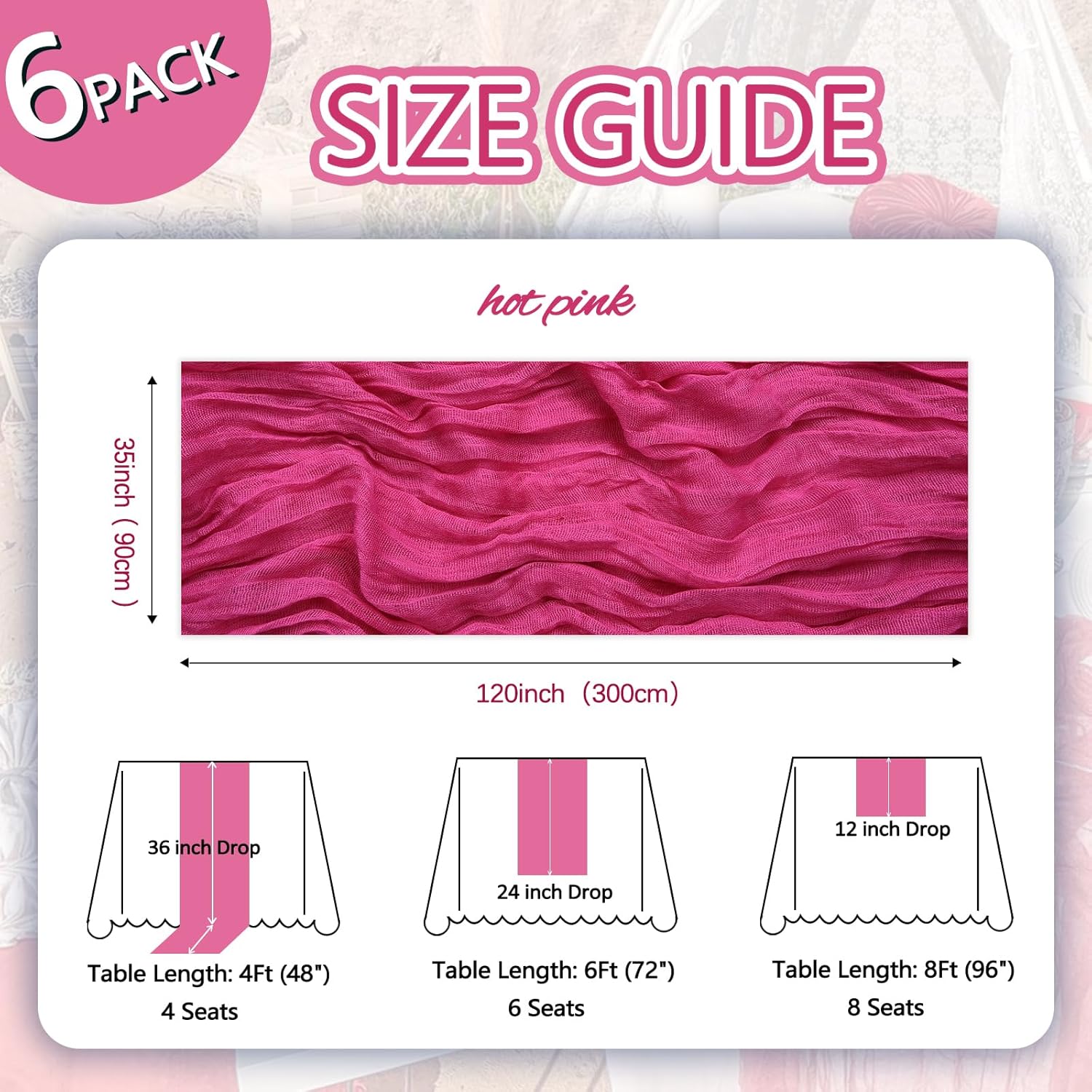 6 Pack Hot Pink Cheesecloth Table Runner 10ft Boho Gauze Fabric Cheese Cloth Table Runner 35 x 120 Inch Rustic Sheer Runner for Romantic Wedding Decor Baby Shower Party Table Centerpiece Decoration