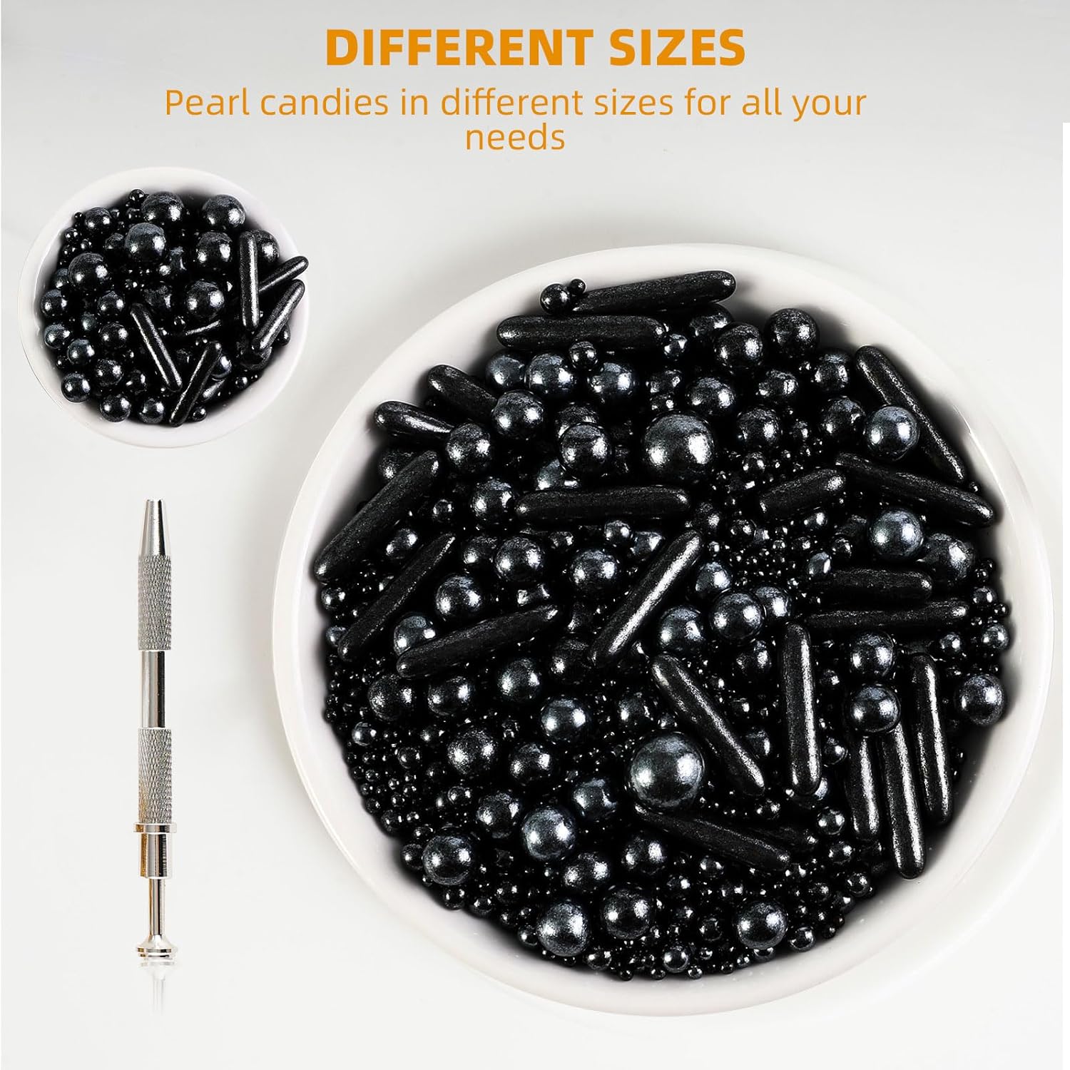 - 【Product List】: You will receive: 1 box of Black cake sprinkles, 118g/4.16oz. 1 piece of pearl grabber. Sufficient quantity, convenient and practical, it can meet your daily needs well.