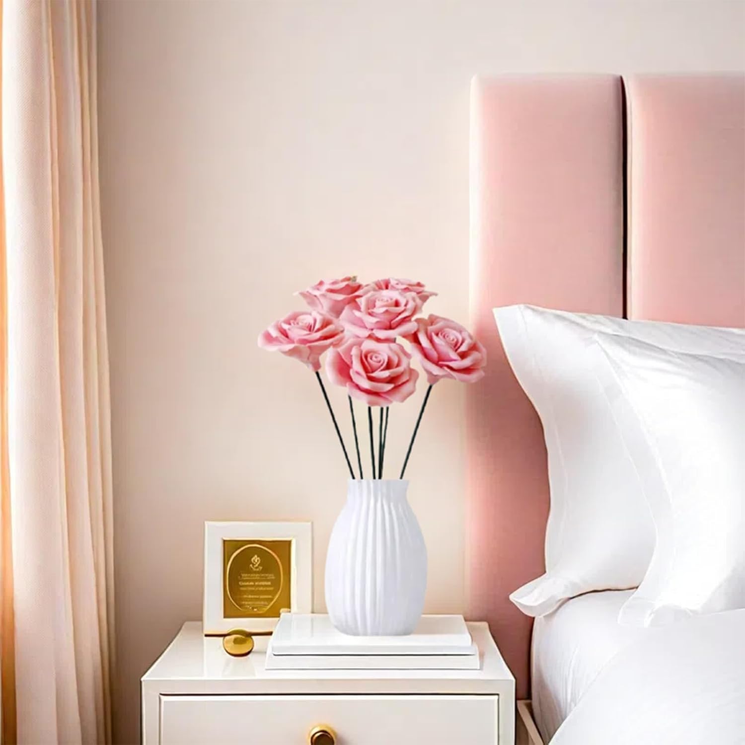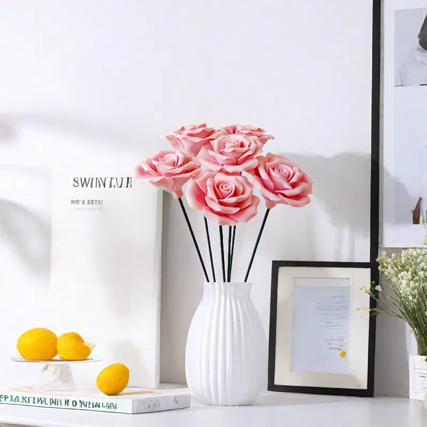 6 pcs Handmade Ceramic Roses,Featuring Vibrant Colors and Intricate Petal Details Floral Decorations Wedding Decoration Christmas Decor Gift Providing Long-Lasting Beauty (Pink)