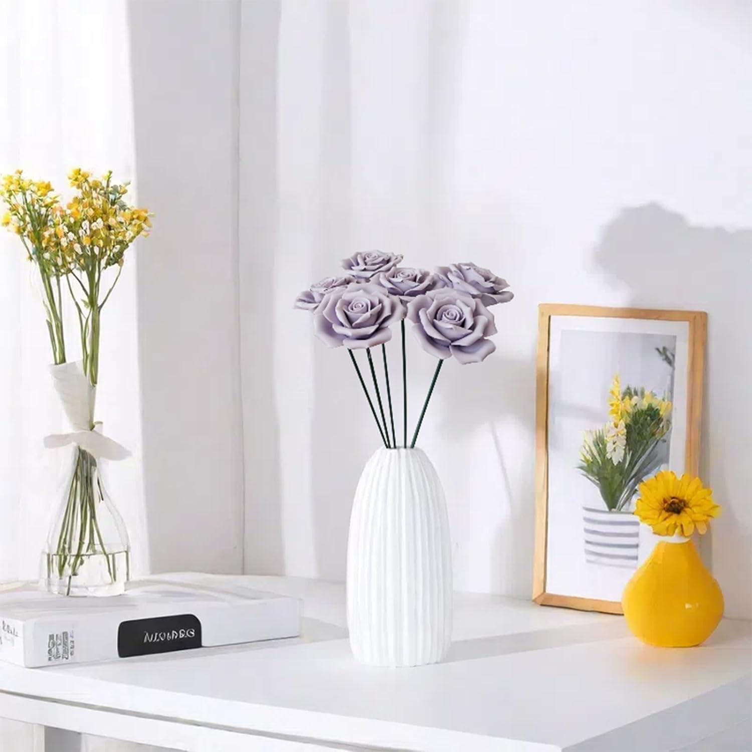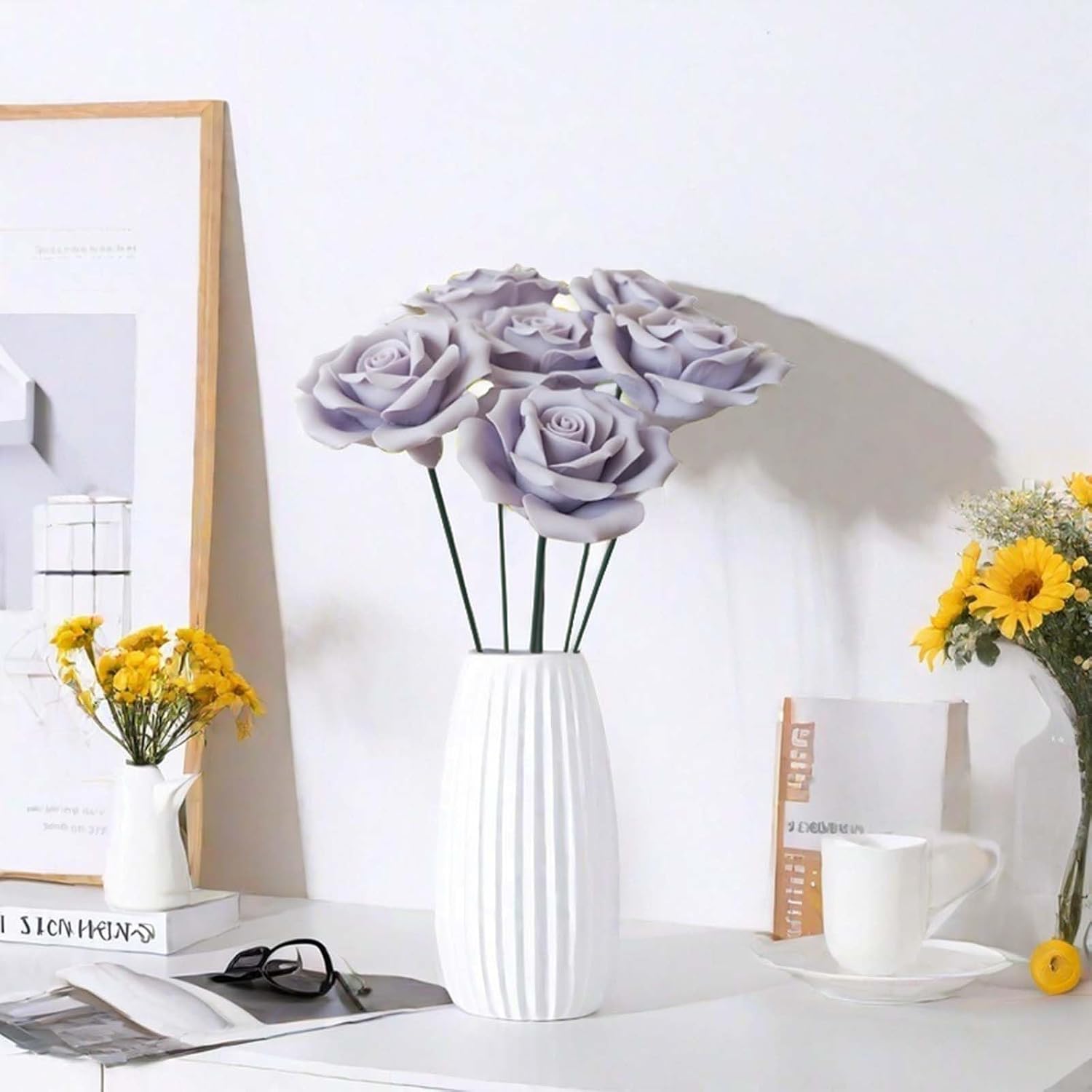 6 pcs Handmade Ceramic Roses,Featuring Vibrant Colors and Intricate Petal Details Floral Decorations Wedding Decoration Christmas Decor Gift Providing Long-Lasting Beauty (Purple)