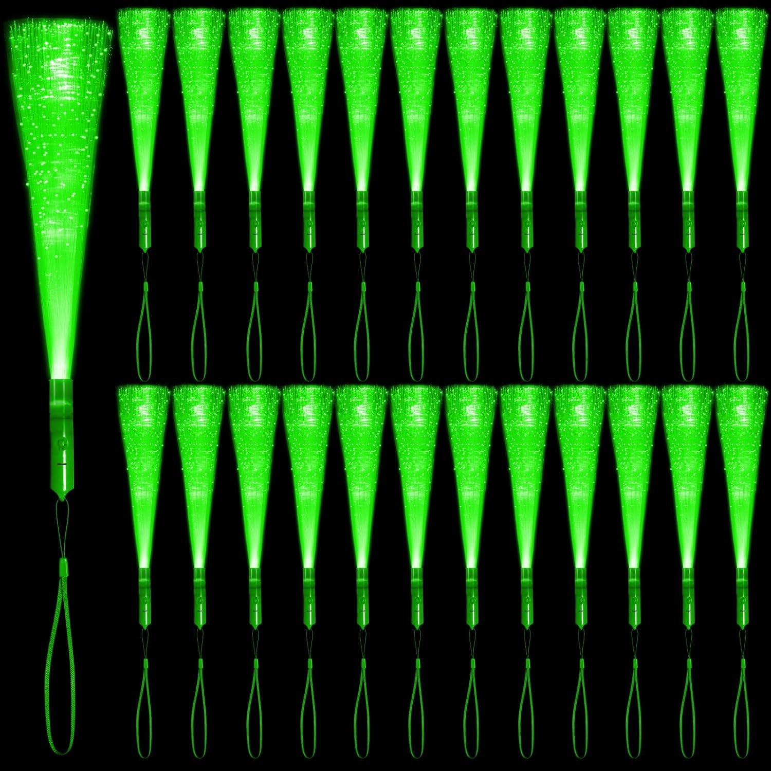 - Glow Fiber Wands: You will get 48 pieces of green light fiber optic wands. Each light up toys can bright enough to attract anyone's sights, you can have fun with your friends at evening party with these colorful flashing wand stick