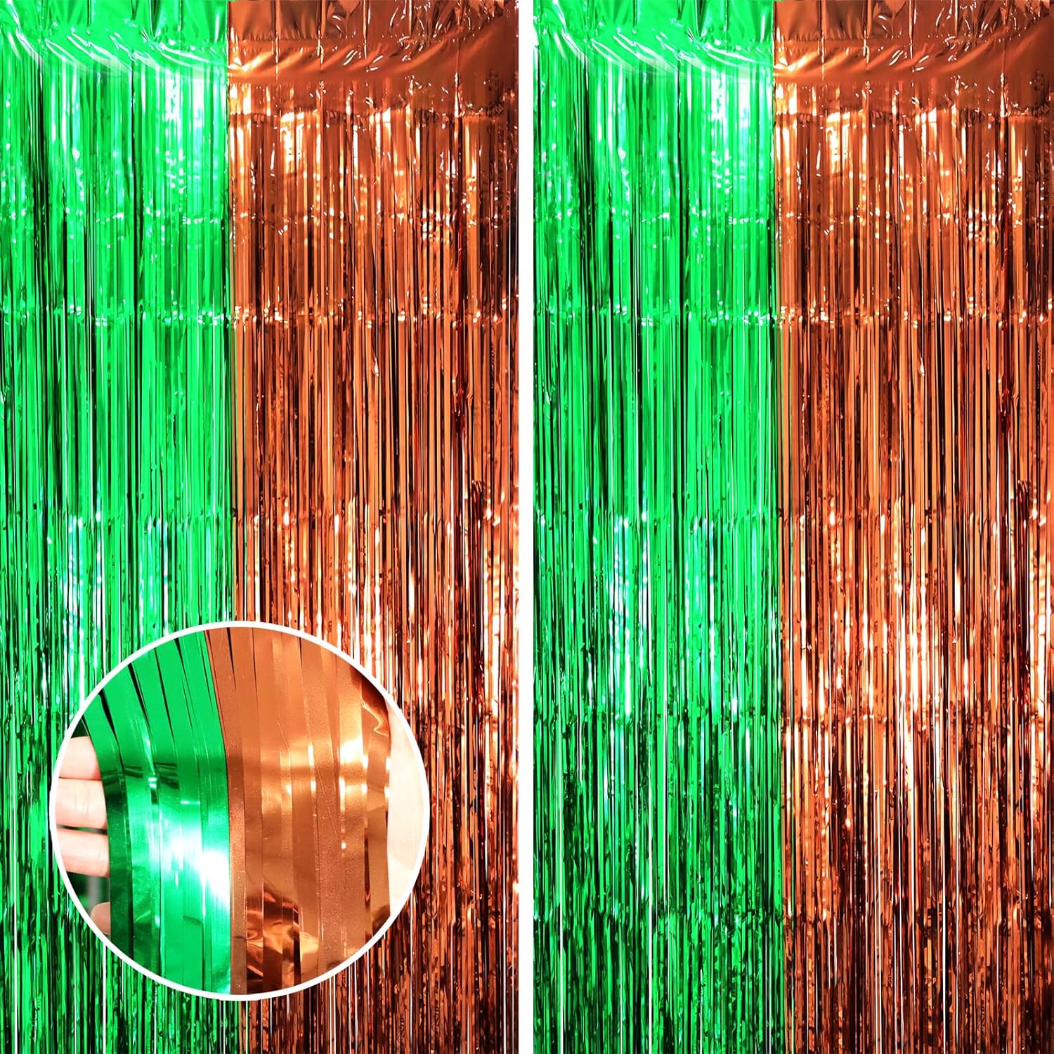 - Stunning Decorative Set: You'll receive 2 pcs green and brown foil fringe backdrop curtains, each measuring 3.28 ft (wide)×6.56 ft (drop). Enough length foil fringe curtains backdrops are perfect for the door or wall to create an impressive decoration