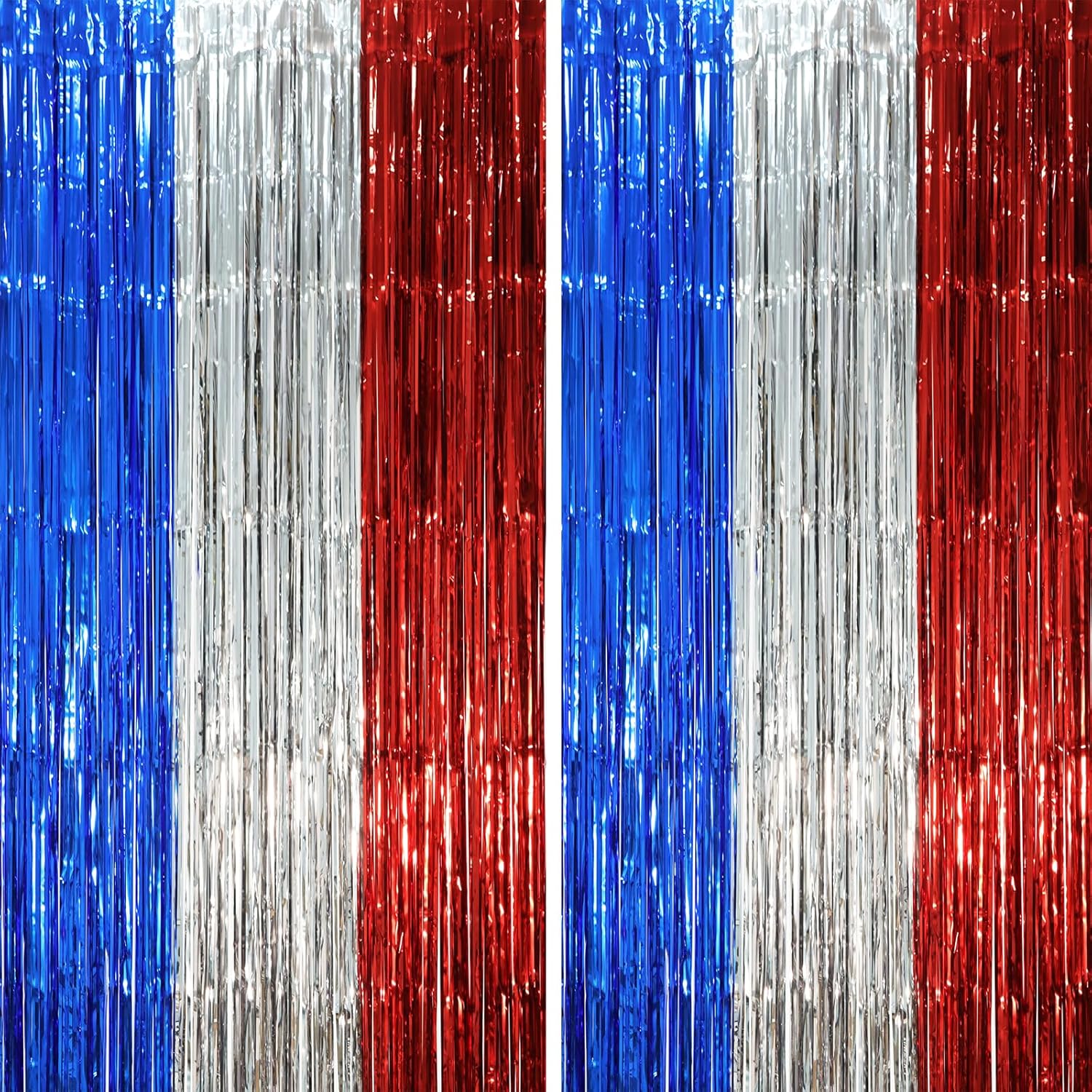 - Stunning Decorative Set: You'll receive 2pcs blue red and silver foil fringe backdrop curtains, each measuring 3.28 ft (wide)×6.56 ft (drop). Enough length foil fringe curtains backdrops are perfect for the door or wall to create an impressive decoration