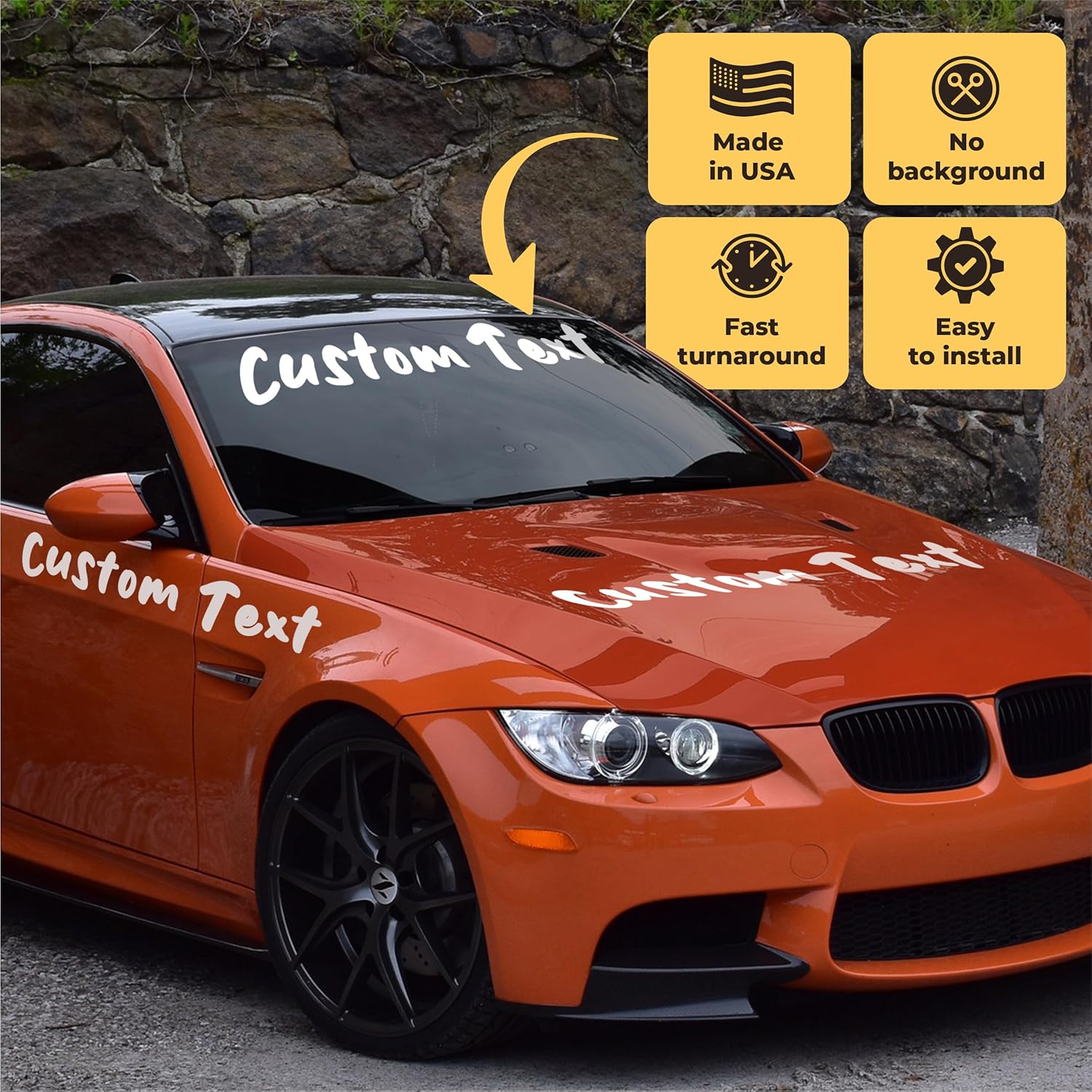 - RESISTANT: These custom car stickers are built to endure all weather conditions, including water, UV rays, and car washes. Our custom window decals stay vibrant and intact through it all.