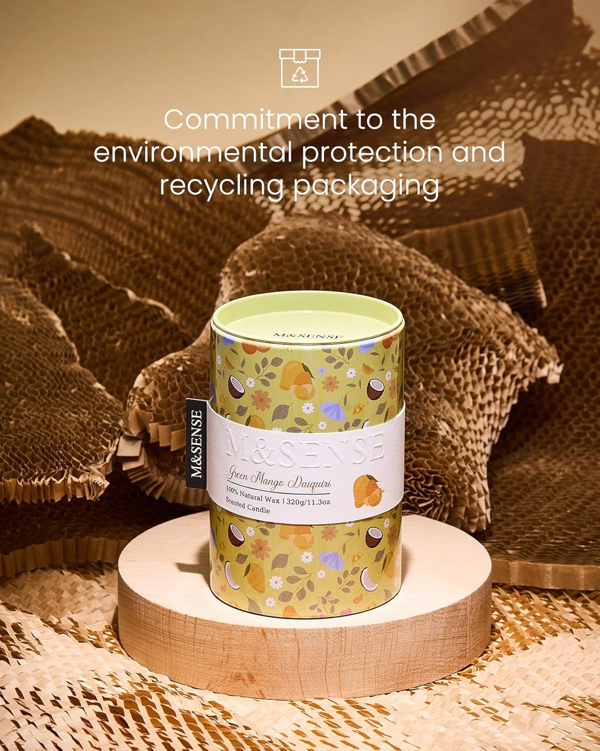 M&SENSE Green Mango Daiquiri Scented Candle, Medium Jar Candle 11.3oz Natural Soy Wax for Home Scented, Floral Candles Gift for Spring Holiday, Up to 70 Hours Burning Long-Lasting Fragrance