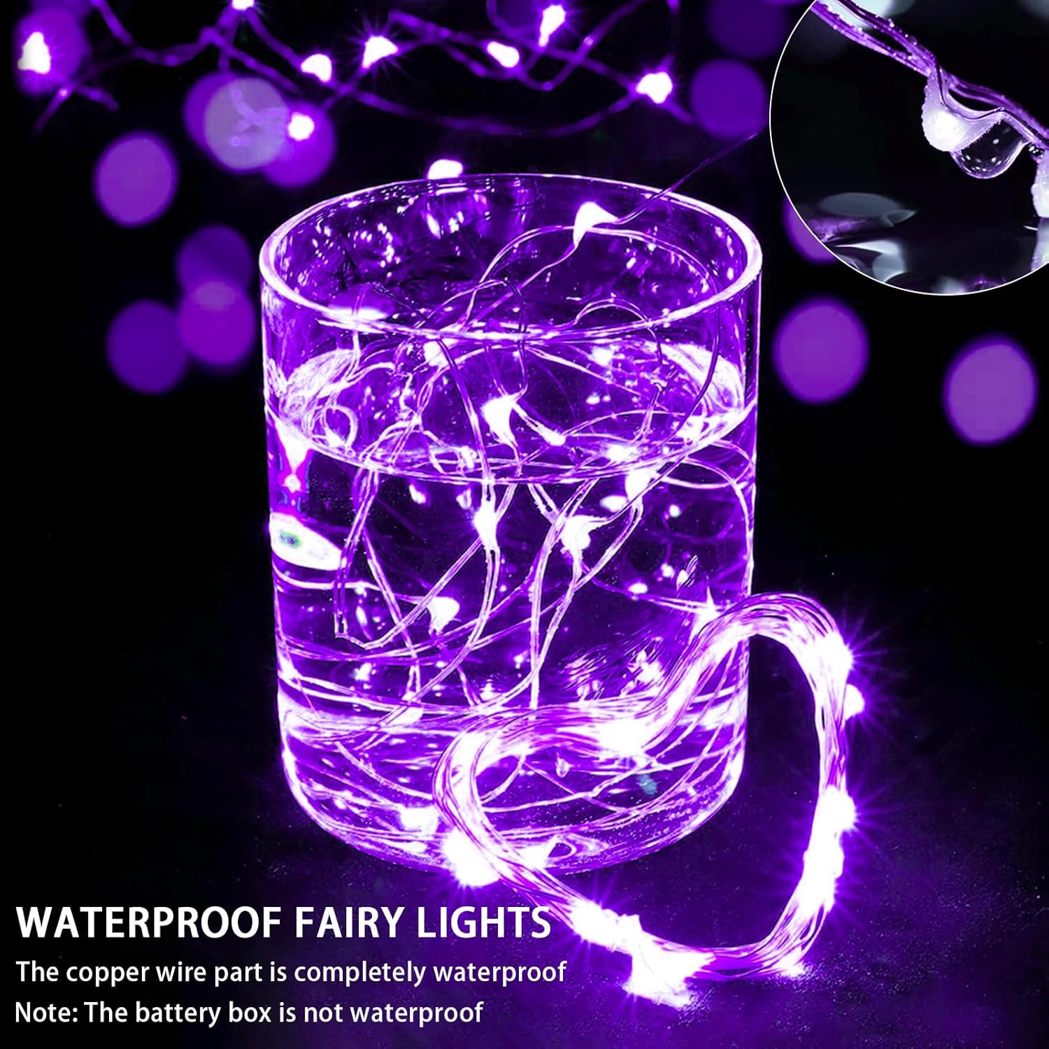 100 Pack Purple Fairy Lights 7Ft 20 LED Twinkle String Lights 3 Modes Battery Operated Waterproof Firefly Starry for Mason Jar Party Wedding Christmas Valentines Day Table Centerpieces