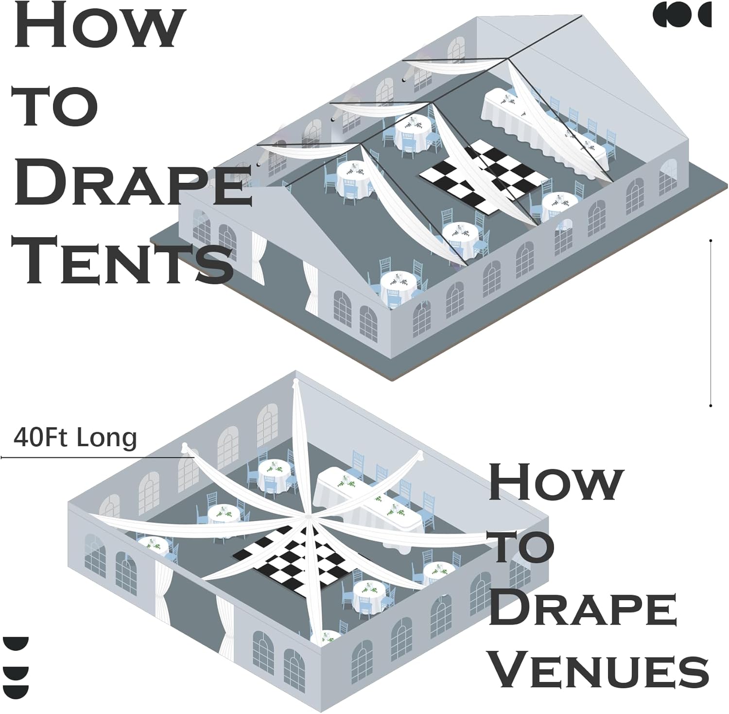 - Extra-Long Brilliance: This draping fabric, with its expansive 40ft Length, allows for grand and luxurious draping panels, making it an ideal choice for creating stunning backdrops, ceiling decor and tent draping that captivate attention.