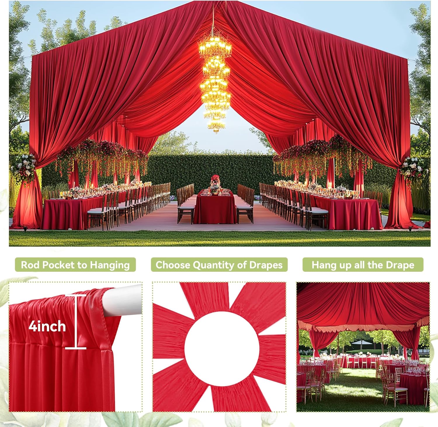 PartyVillage 20ftx40ft Red Ceiling Curtain for Wedding Parties – 4 Panels Wrinkle-Free 40 FT Long Tent Draping Curtains for Wedding, Birthday & Theme Parties, 40ft Height with Rod Pocket
